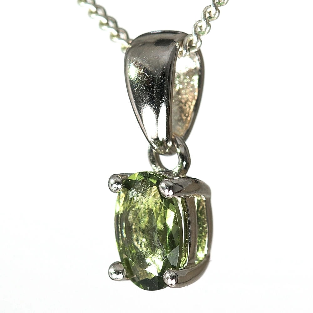 天然モルダバイトジュエリーカットペンダントトップ/プチサイズ(シルバー925・オーバル/石高約5.8mm)