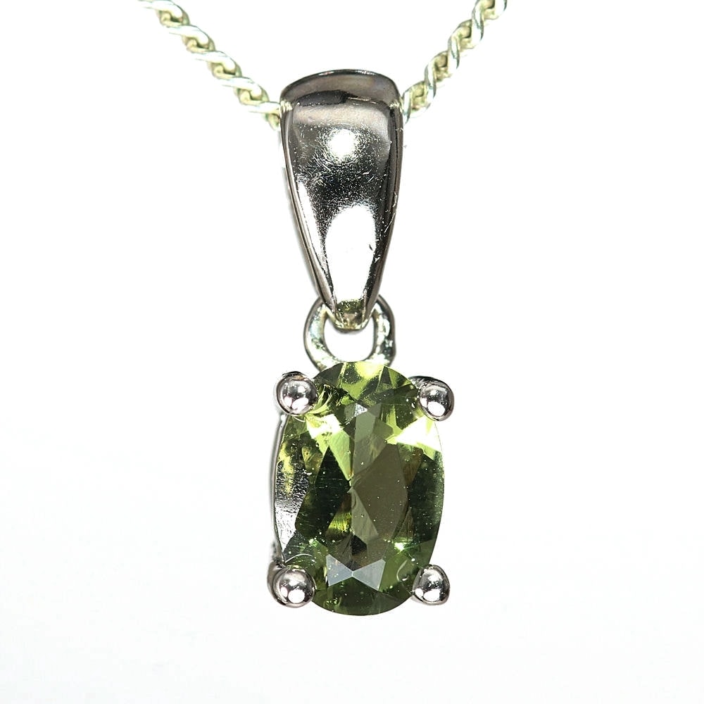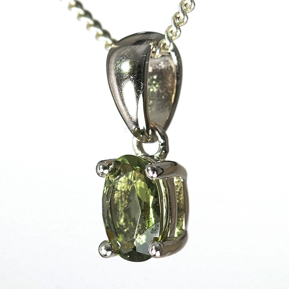 天然モルダバイトジュエリーカットペンダントトップ/プチサイズ(シルバー925・オーバル/石高約5.8mm)