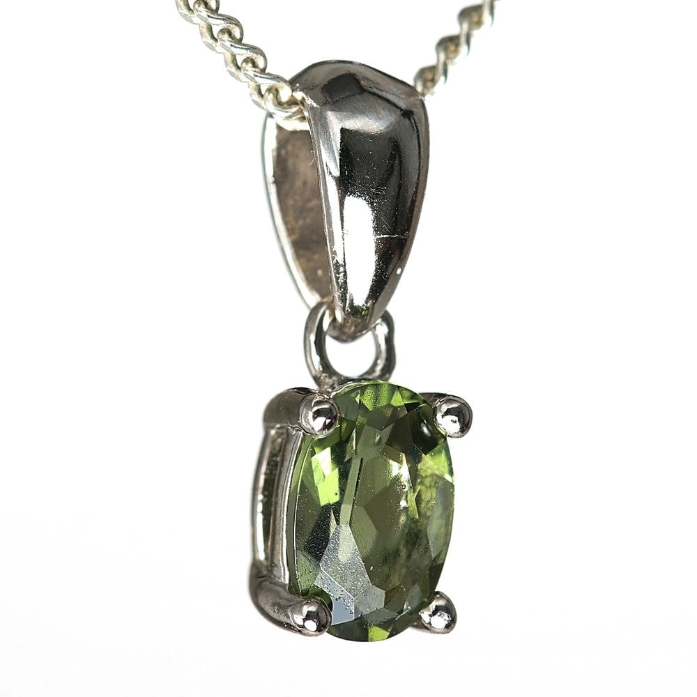 天然モルダバイトジュエリーカットペンダントトップ/プチサイズ(シルバー925・オーバル/石高約5.8mm)