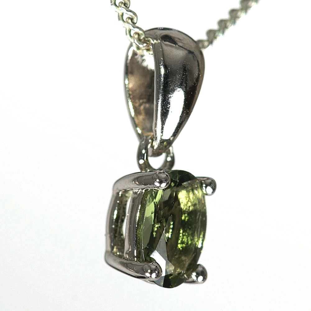 天然モルダバイトジュエリーカットペンダントトップ/プチサイズ(シルバー925・オーバル/石高約5.8mm)