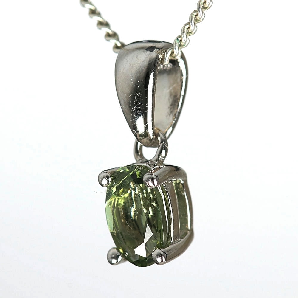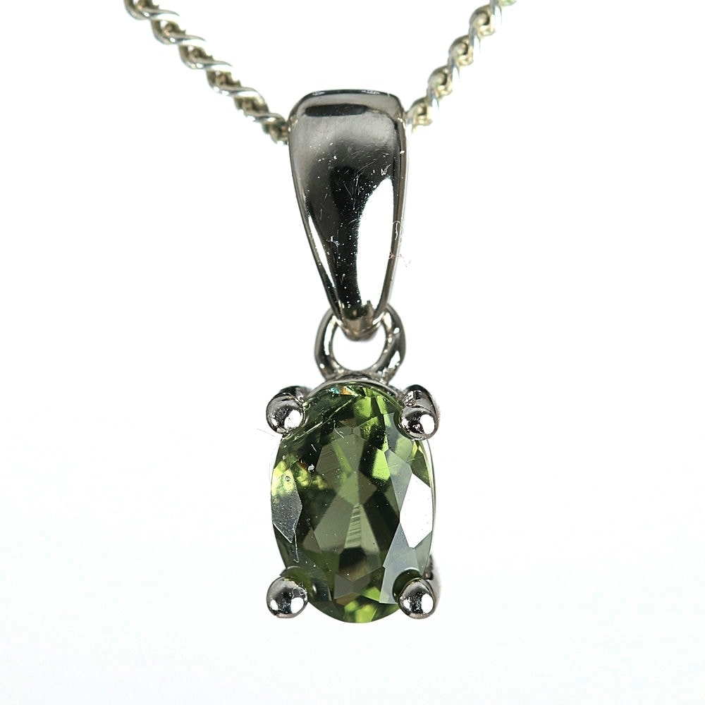 天然モルダバイトジュエリーカットペンダントトップ/プチサイズ(シルバー925・オーバル/石高約5.8mm)