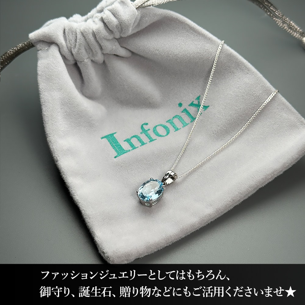 トパーズ特有の強い光沢とクリアな結晶構造を活かし、他の石とは一線を画す鋭い輝きを実現しました。 知性を研ぎ澄ますような澄んだ青は、シーンを選ばず洗練された印象を与えます。 ※ネックレストップのみ(チェーン別売)の販売です。
