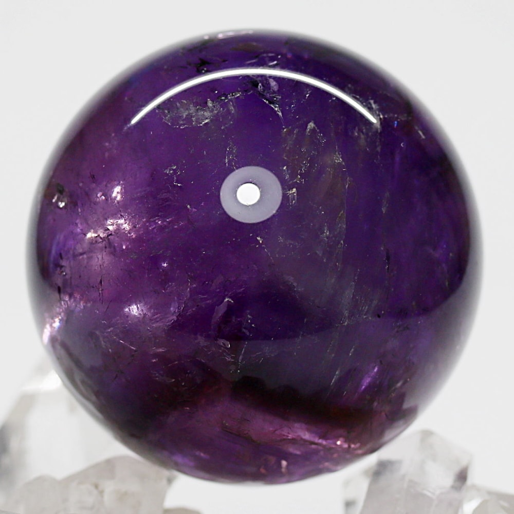 アメジストの丸玉は、白濁部分が多く、透明感に乏しいものが一般的です。