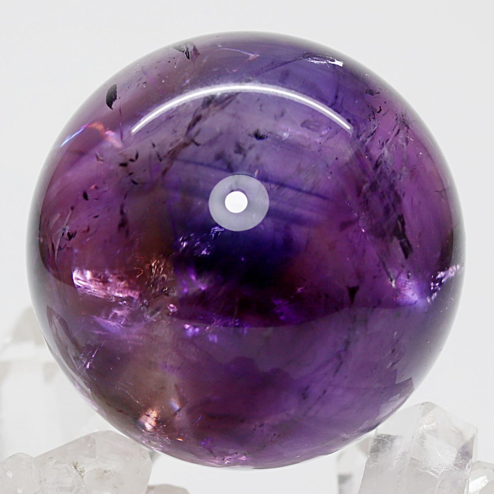 アメジストの丸玉は、白濁部分が多く、透明感に乏しいものが一般的です。