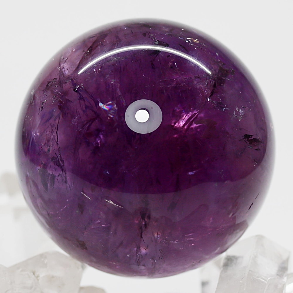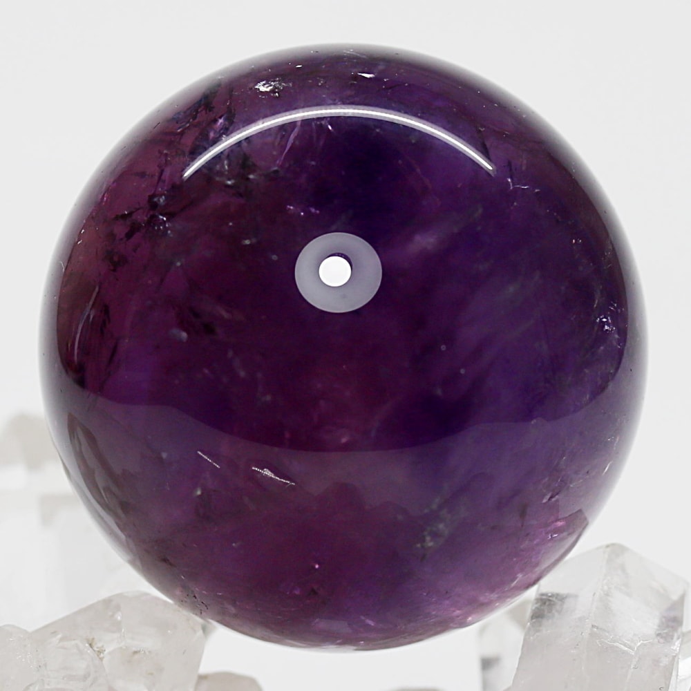 アメジストの丸玉は、白濁部分が多く、透明感に乏しいものが一般的です。