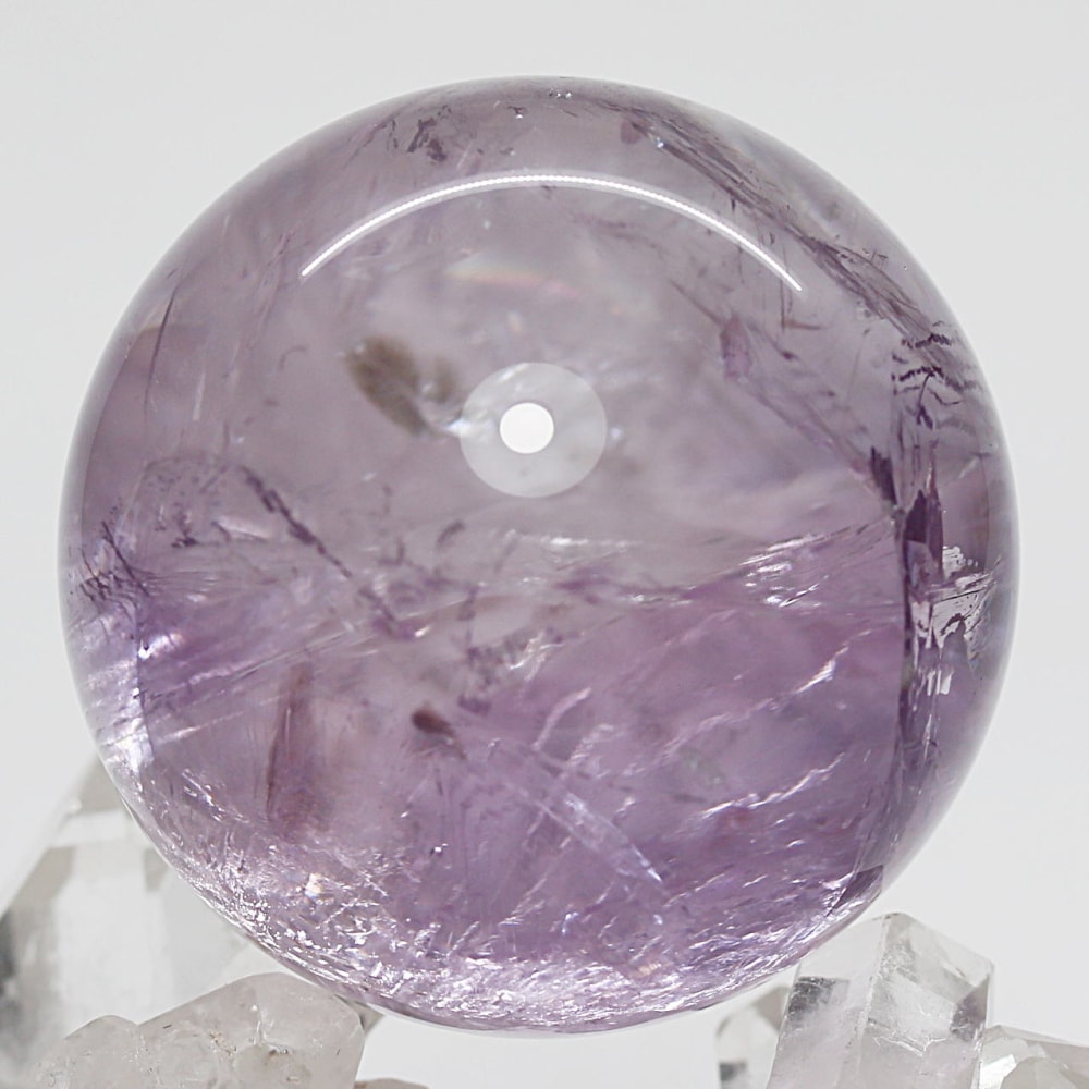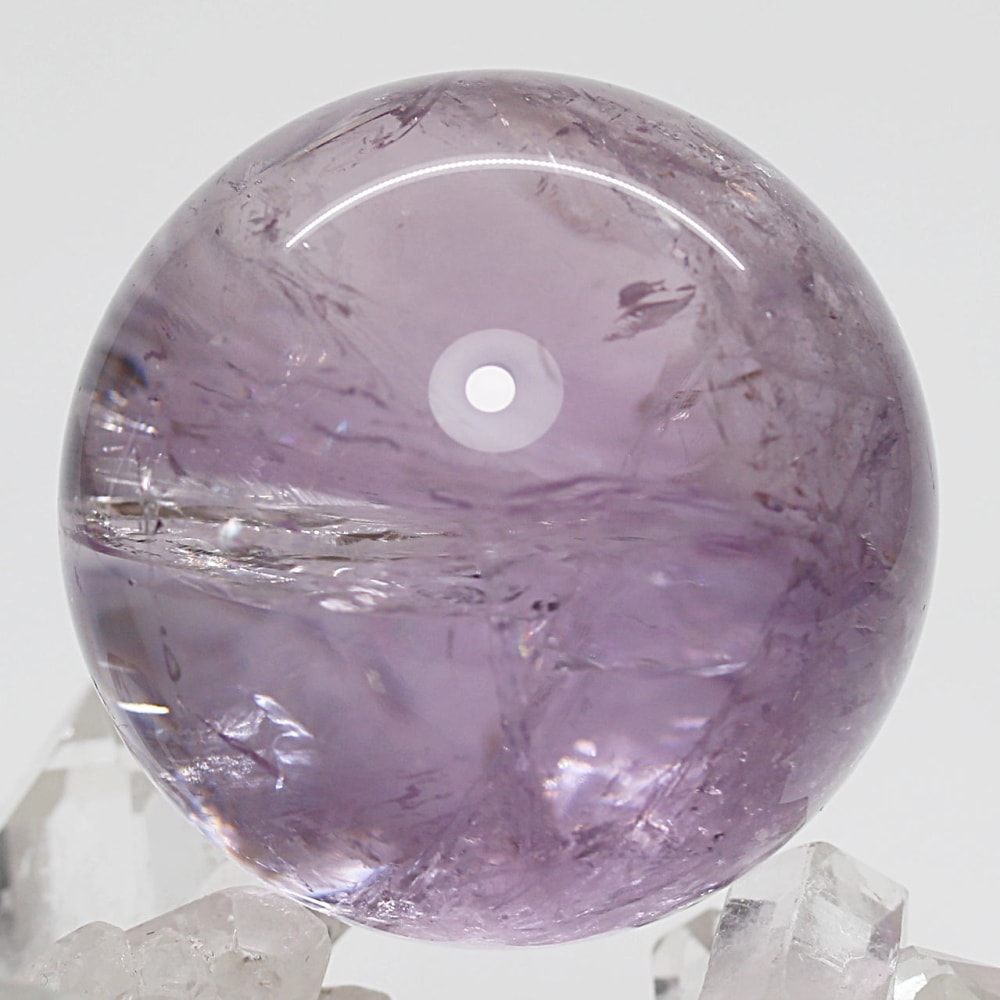 やさしく澄んだ輝きを宿す、淡いラベンダーカラーの【高品質】アメジスト丸玉