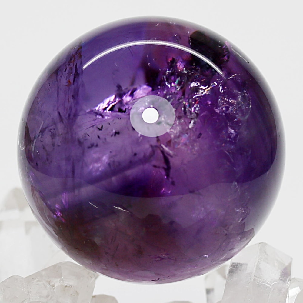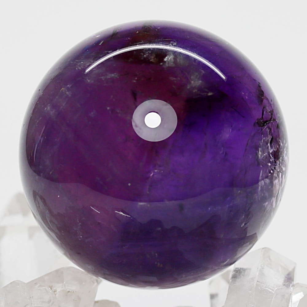 アメジストの丸玉は、白濁部分が多く、透明感に乏しいものが一般的です。