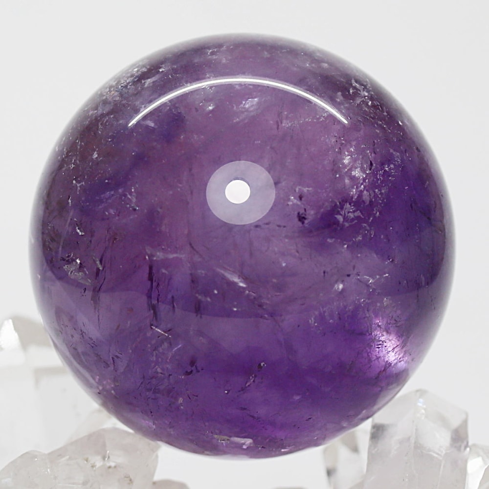 アメジストの丸玉は、白濁部分が多く、透明感に乏しいものが一般的です。