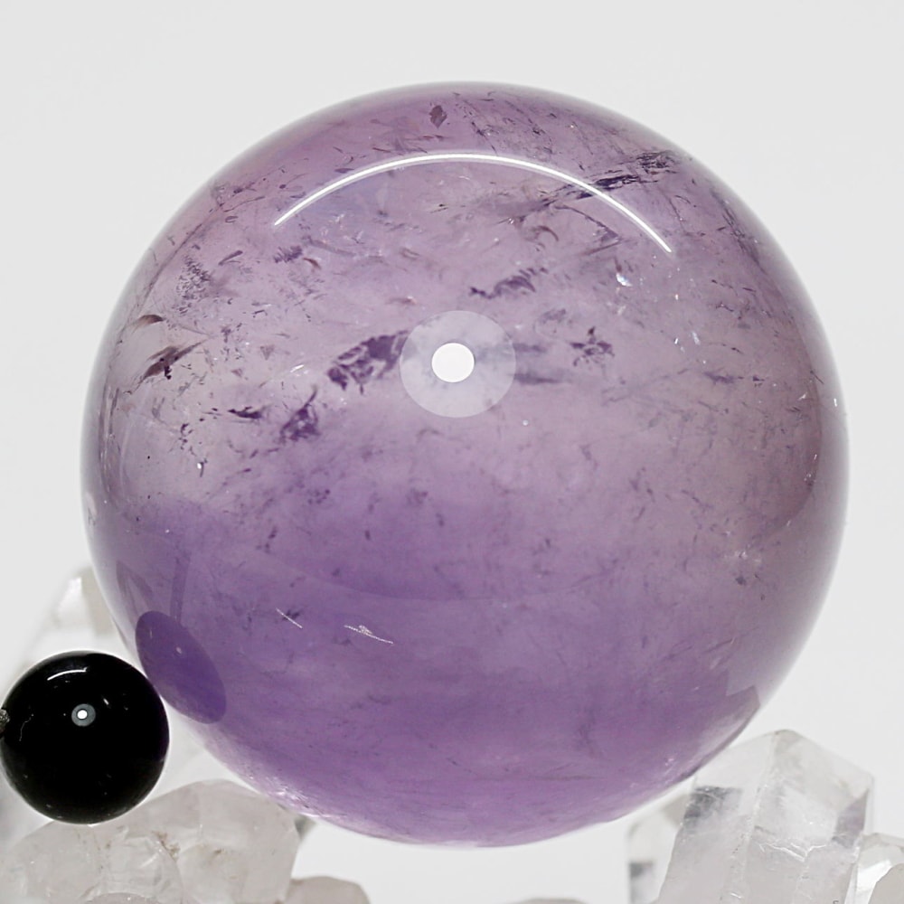 やさしく澄んだ輝きを宿す、淡いラベンダーカラーの【高品質】アメジスト丸玉