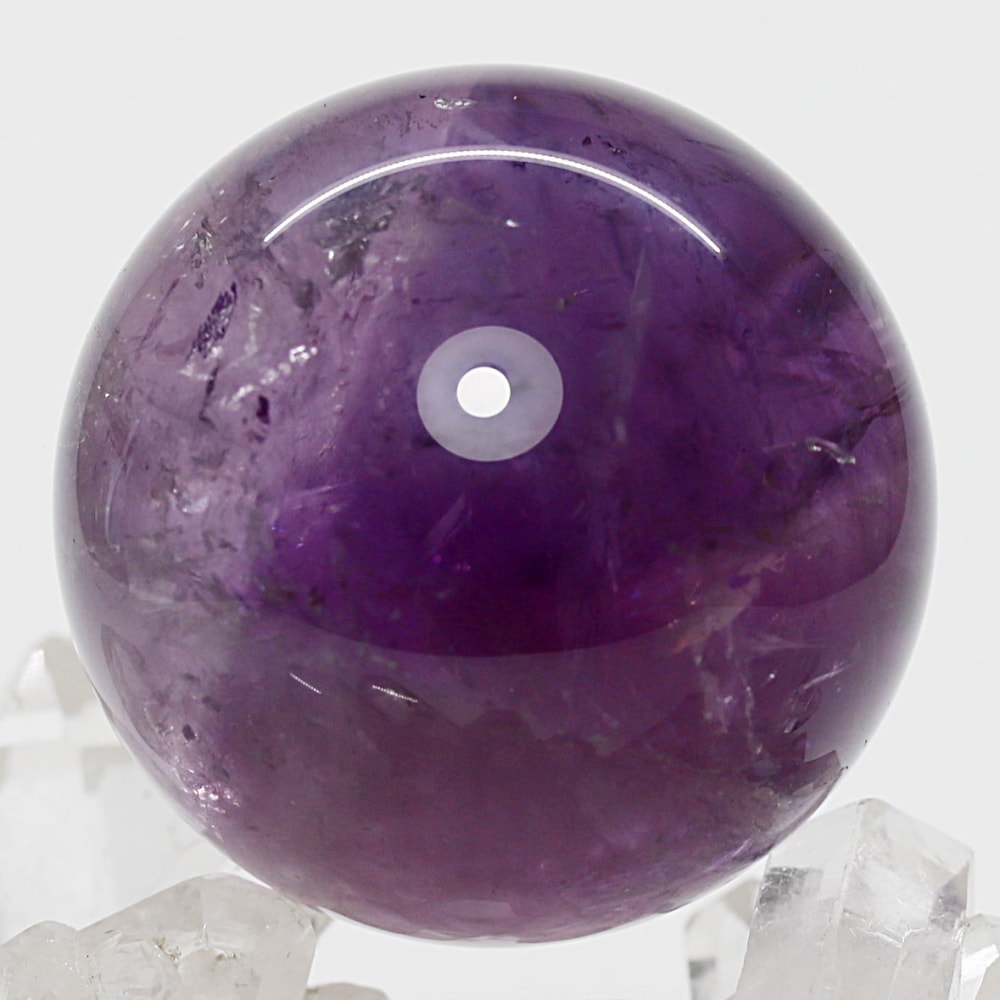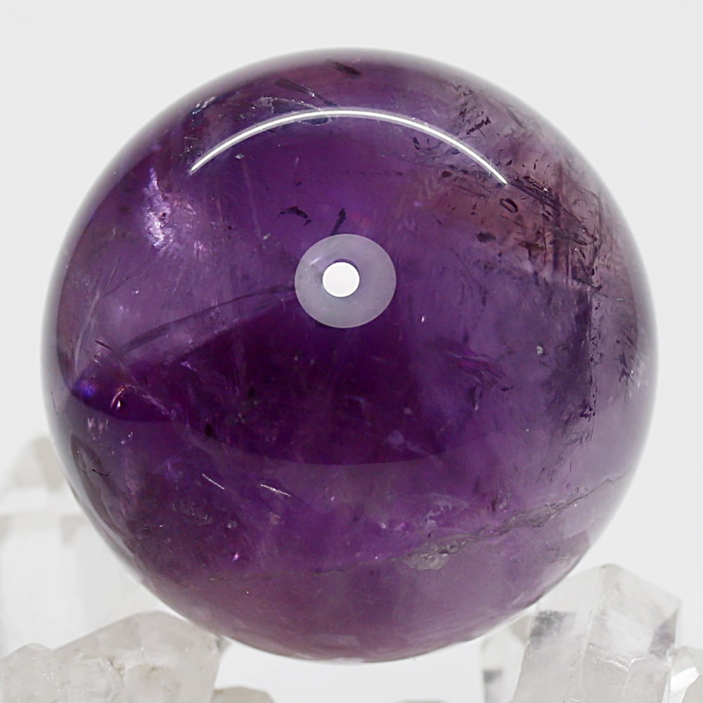 アメジストの丸玉は、白濁部分が多く、透明感に乏しいものが一般的です。