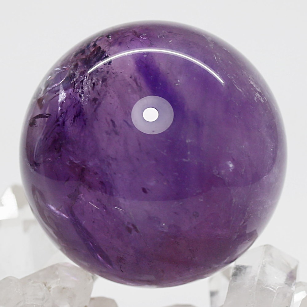 アメジストの丸玉は、白濁部分が多く、透明感に乏しいものが一般的です。