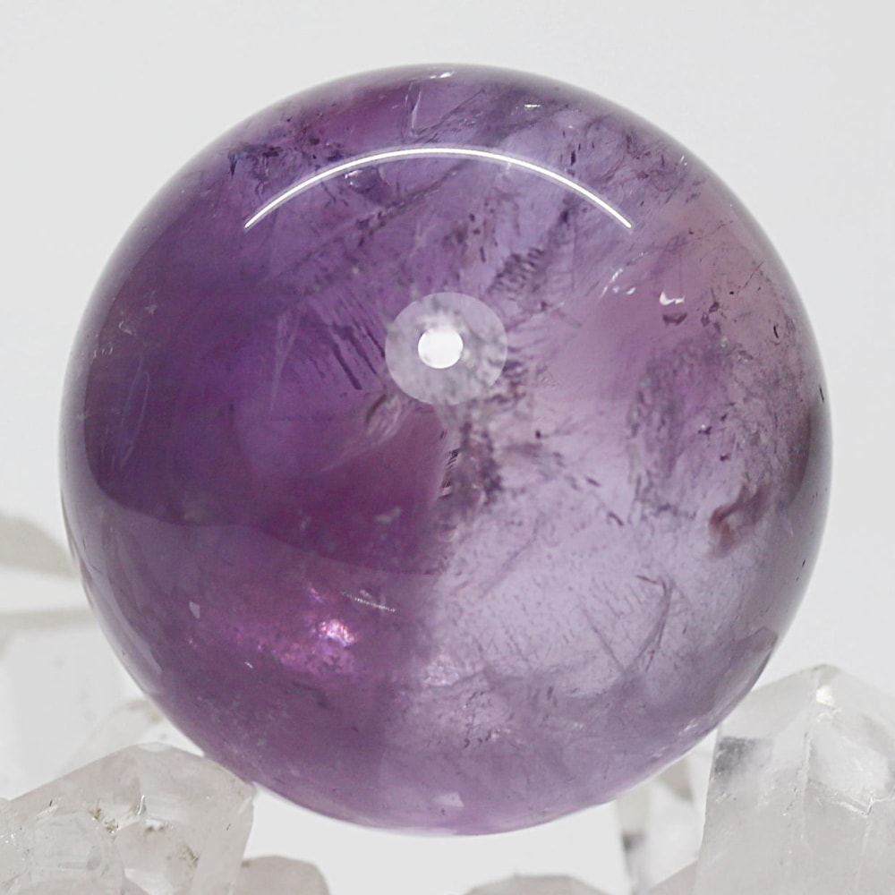 やさしく澄んだ輝きを宿す、淡いラベンダーカラーの【高品質】アメジスト丸玉