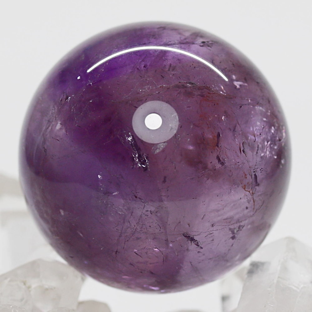 アメジストの丸玉は、白濁部分が多く、透明感に乏しいものが一般的です。
