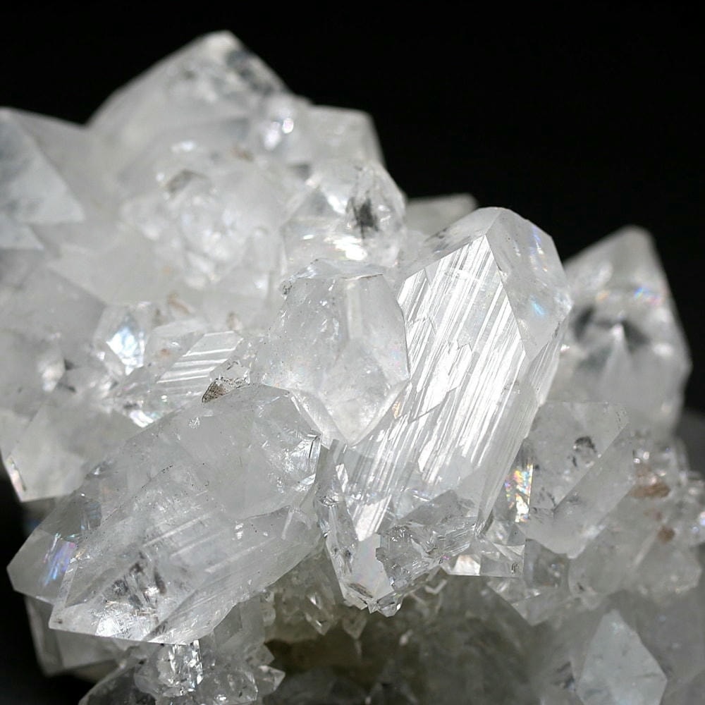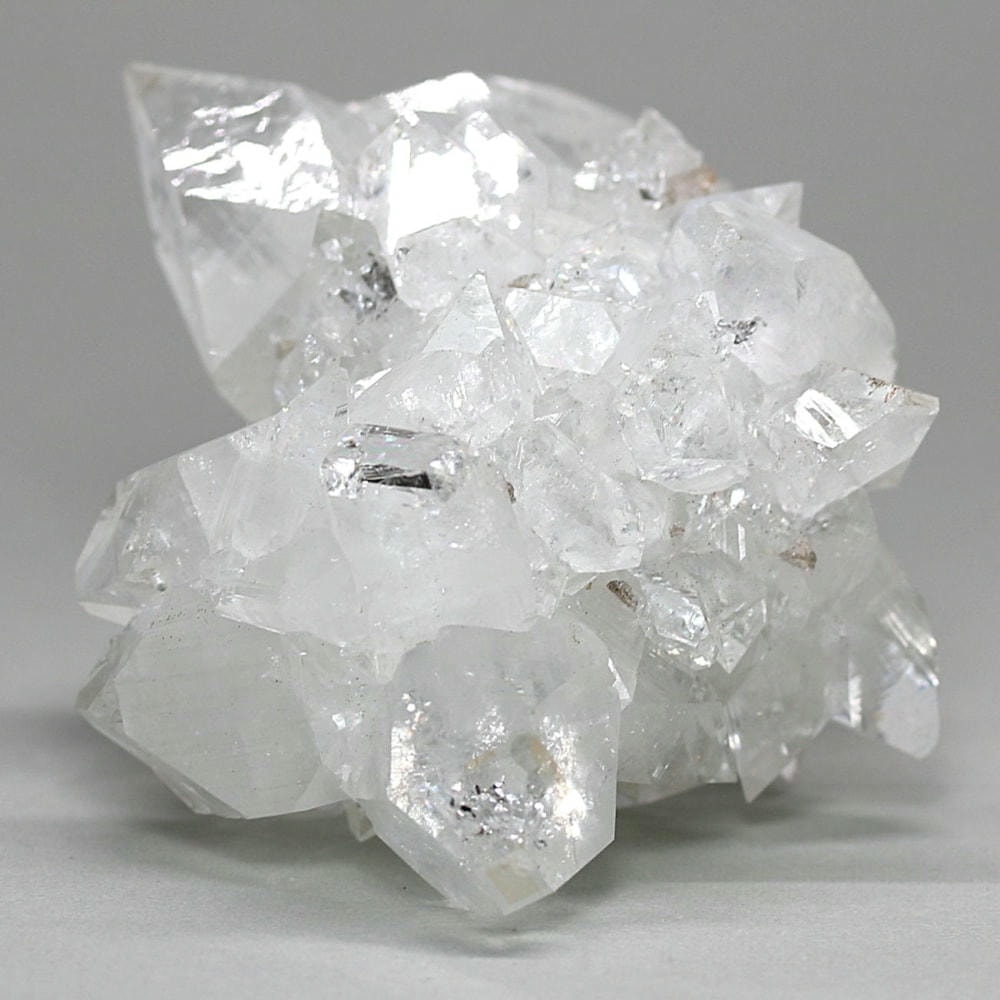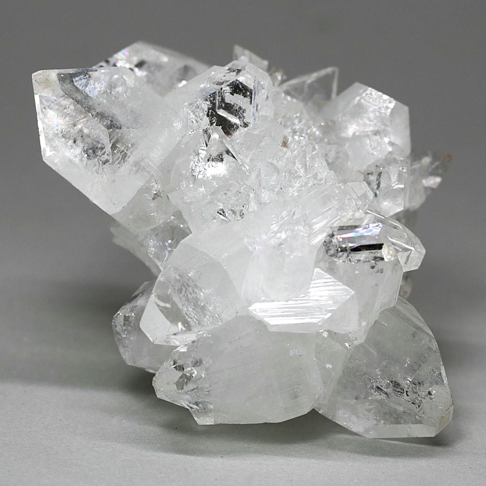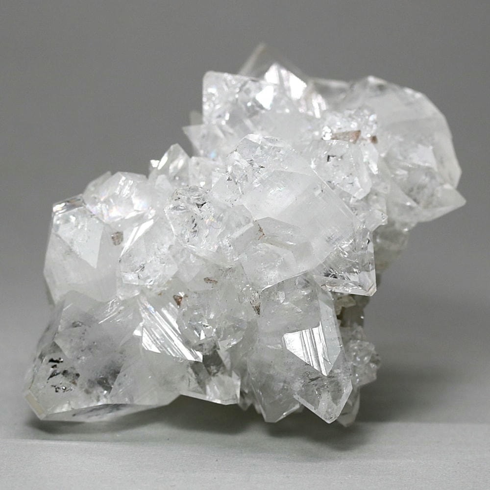 水晶が六角形(六方晶系)の結晶であるのに対し、アポフィライトは正方形(正方晶系)の結晶を成すのが特徴です。キューブ状の結晶が鏡面のように輝き、他の結晶とは一線を画す魅力をお楽しみいただけます。