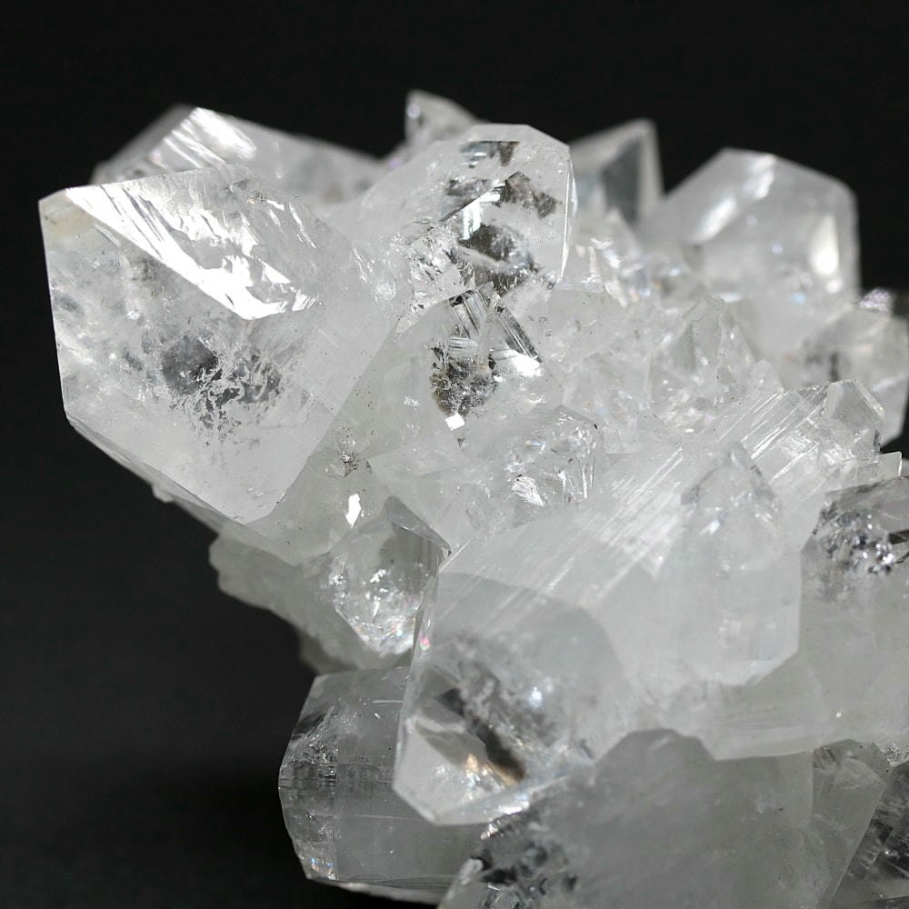 まるで透明度の高い水晶のように澄み切った結晶が、光を受けてひと際きらめく “ワンランク上のアポフィライトクラスター” をご用意。
