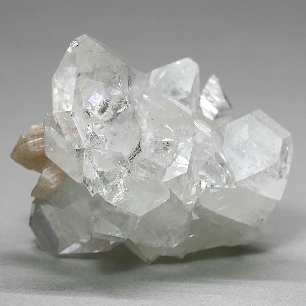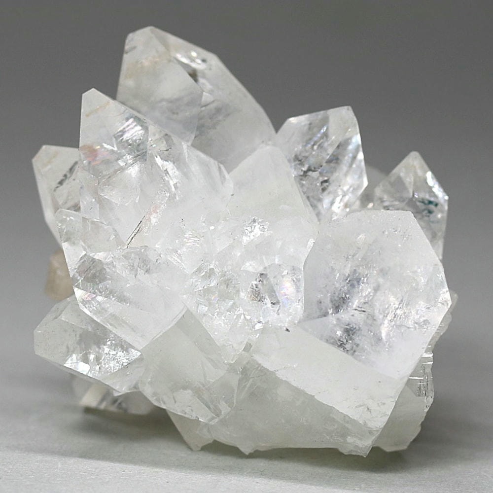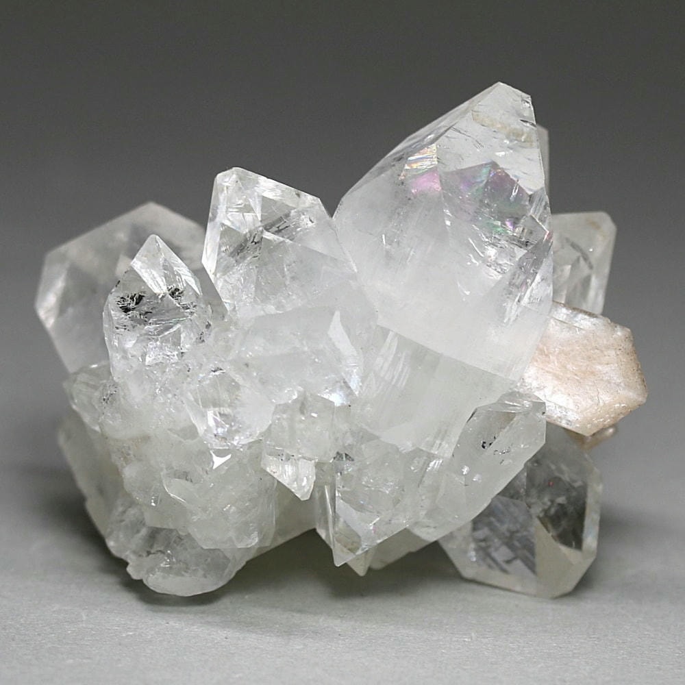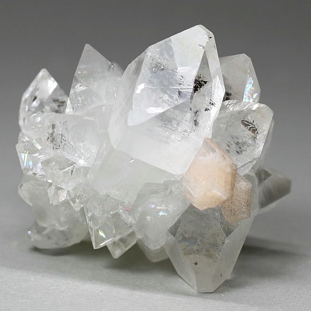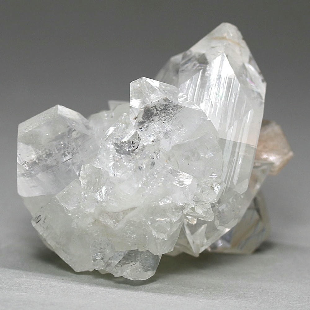 水晶が六角形(六方晶系)の結晶であるのに対し、アポフィライトは正方形(正方晶系)の結晶を成すのが特徴です。キューブ状の結晶が鏡面のように輝き、他の結晶とは一線を画す魅力をお楽しみいただけます。