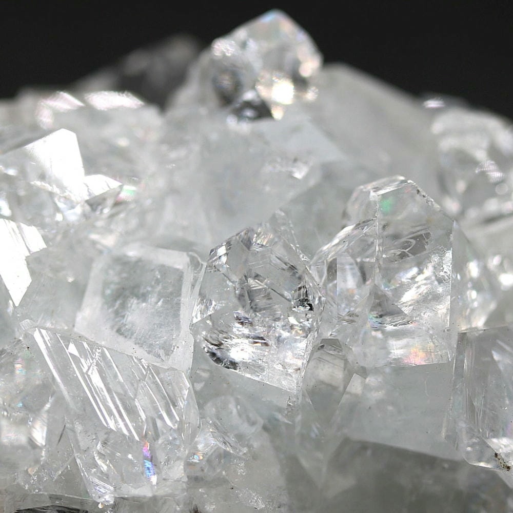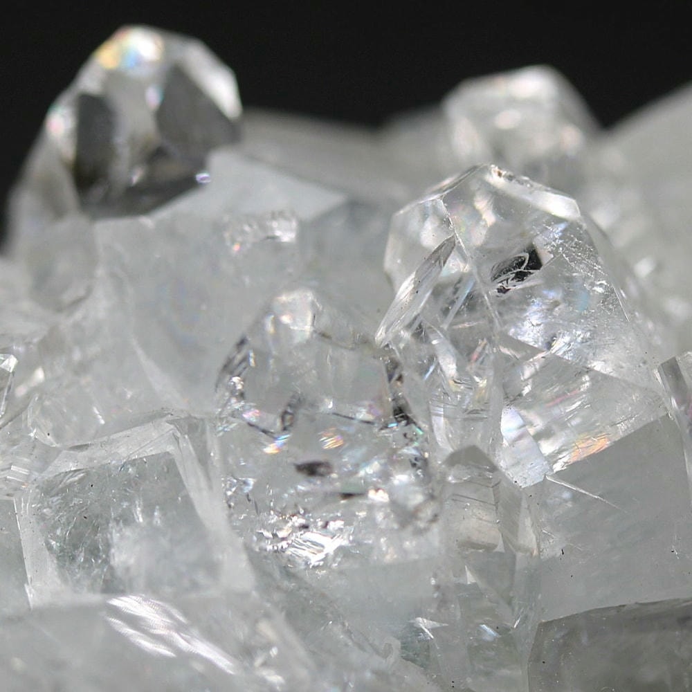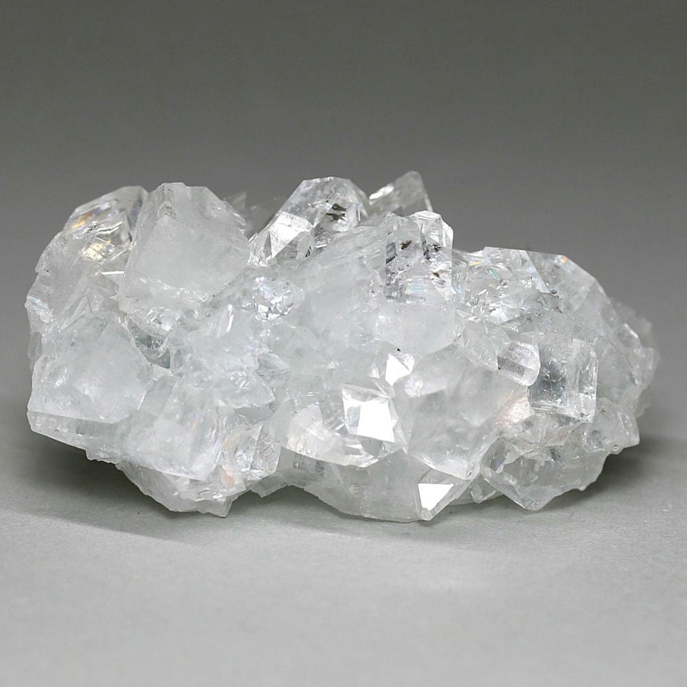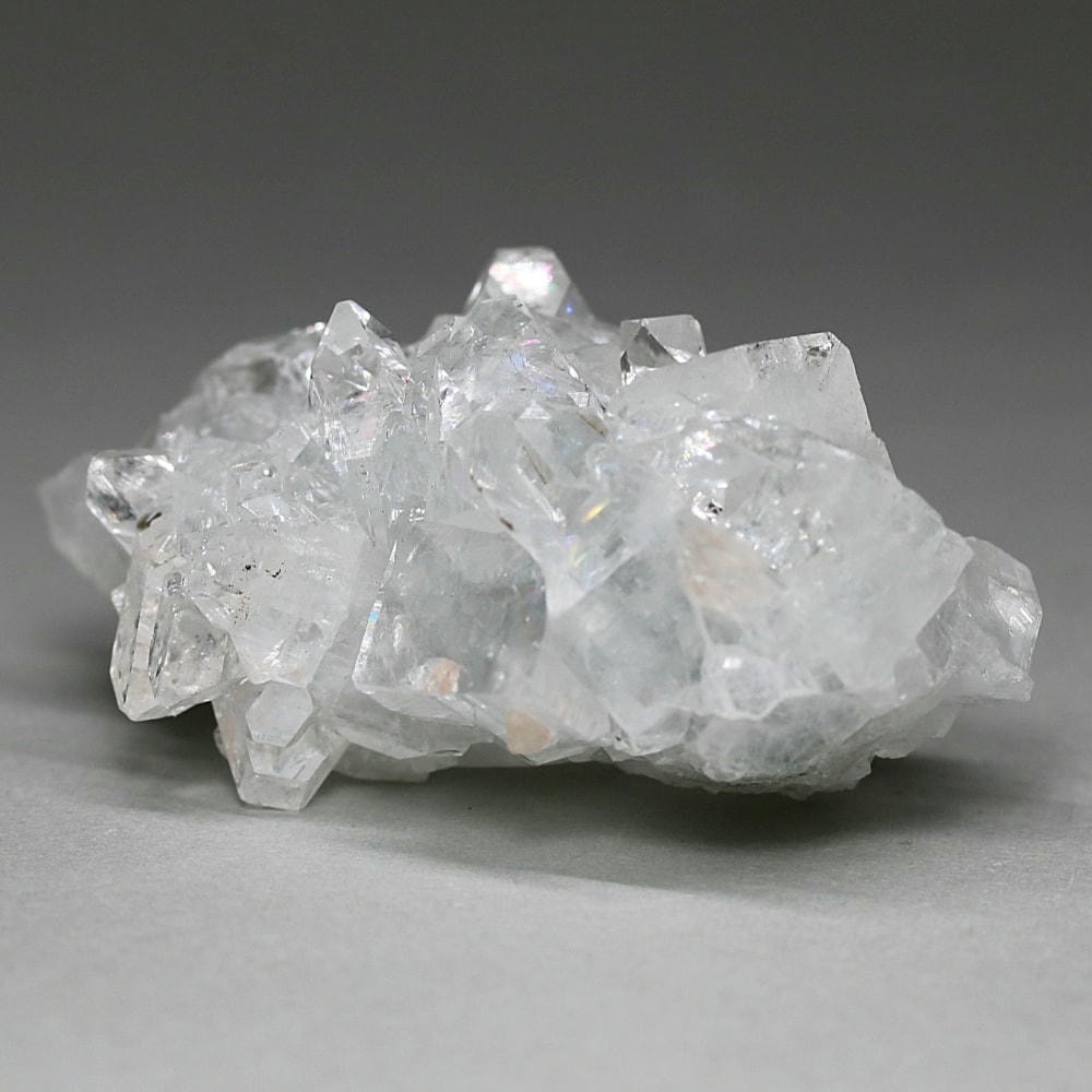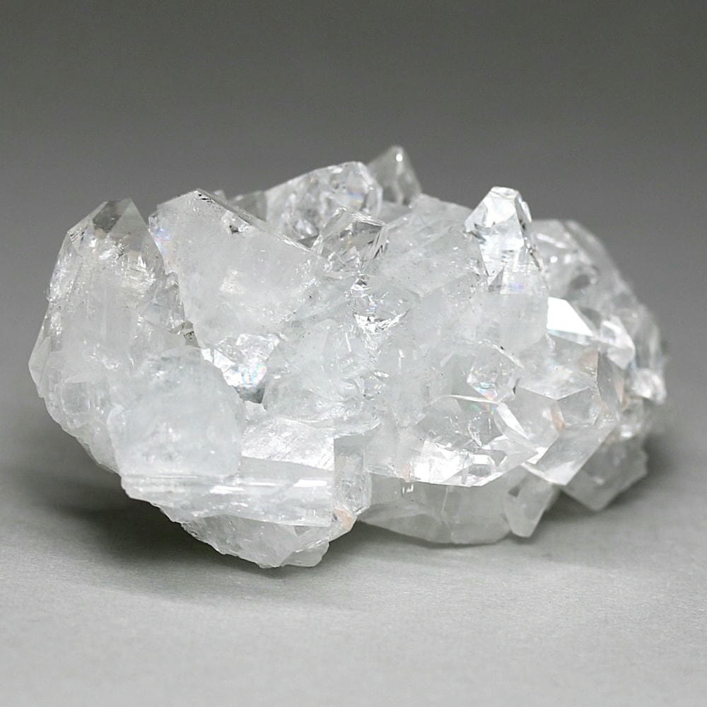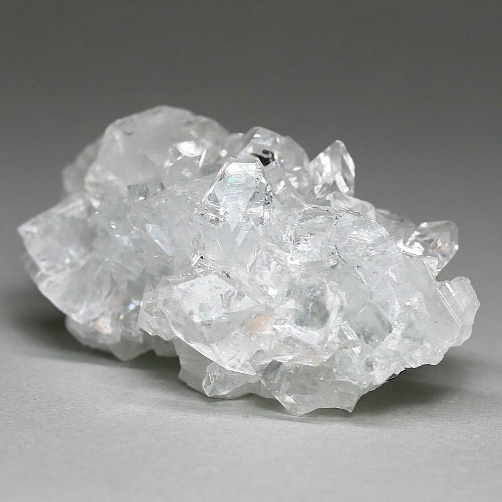 水晶が六角形(六方晶系)の結晶であるのに対し、アポフィライトは正方形(正方晶系)の結晶を成すのが特徴です。キューブ状の結晶が鏡面のように輝き、他の結晶とは一線を画す魅力をお楽しみいただけます。