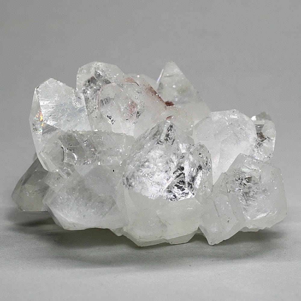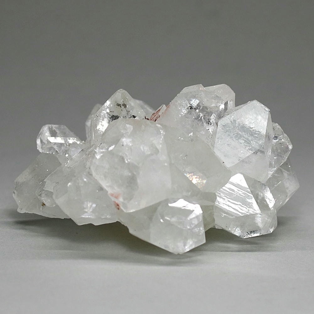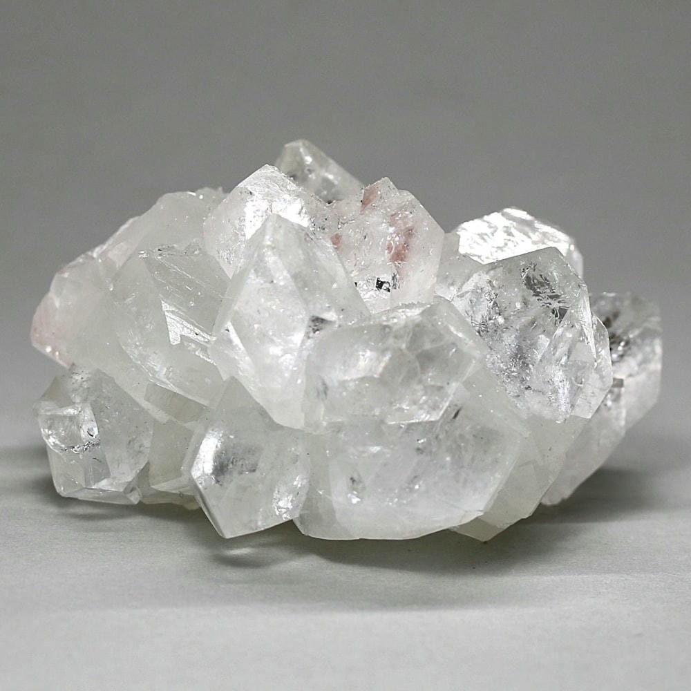 水晶が六角形(六方晶系)の結晶であるのに対し、アポフィライトは正方形(正方晶系)の結晶を成すのが特徴です。キューブ状の結晶が鏡面のように輝き、他の結晶とは一線を画す魅力をお楽しみいただけます。
