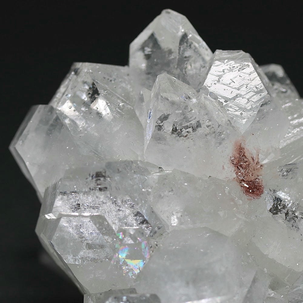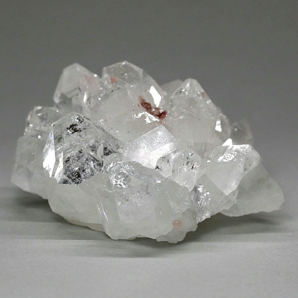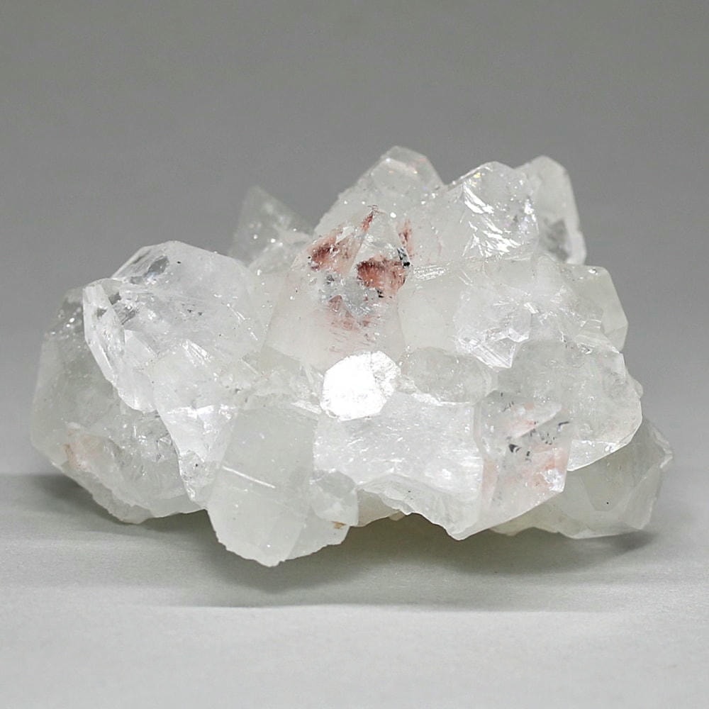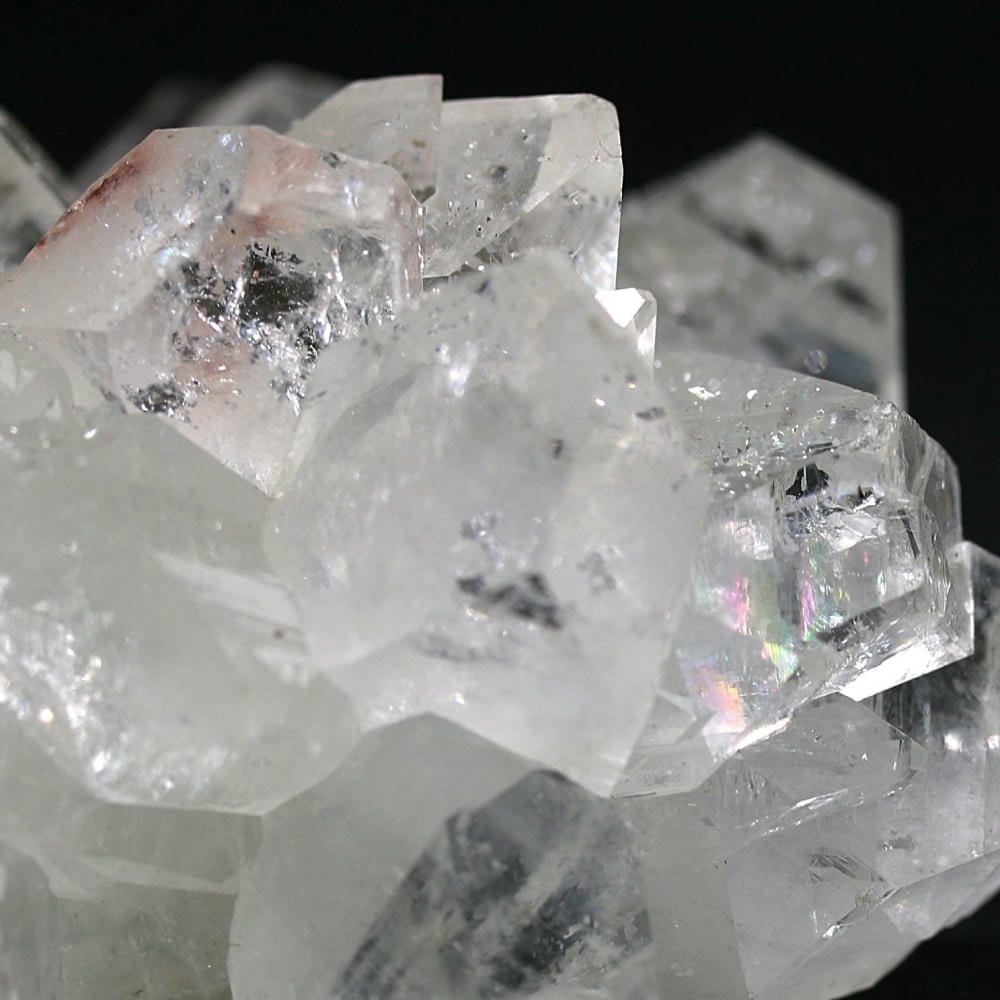 水晶が六角形(六方晶系)の結晶であるのに対し、アポフィライトは正方形(正方晶系)の結晶を成すのが特徴です。キューブ状の結晶が鏡面のように輝き、他の結晶とは一線を画す魅力をお楽しみいただけます。