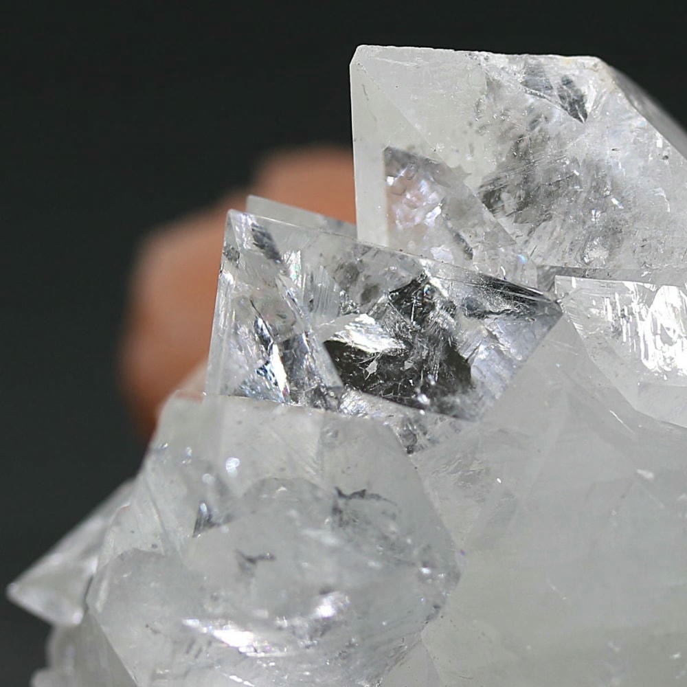 水晶が六角形(六方晶系)の結晶であるのに対し、アポフィライトは正方形(正方晶系)の結晶を成すのが特徴です。キューブ状の結晶が鏡面のように輝き、他の結晶とは一線を画す魅力をお楽しみいただけます。
