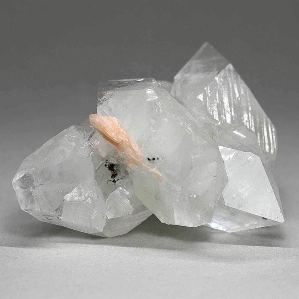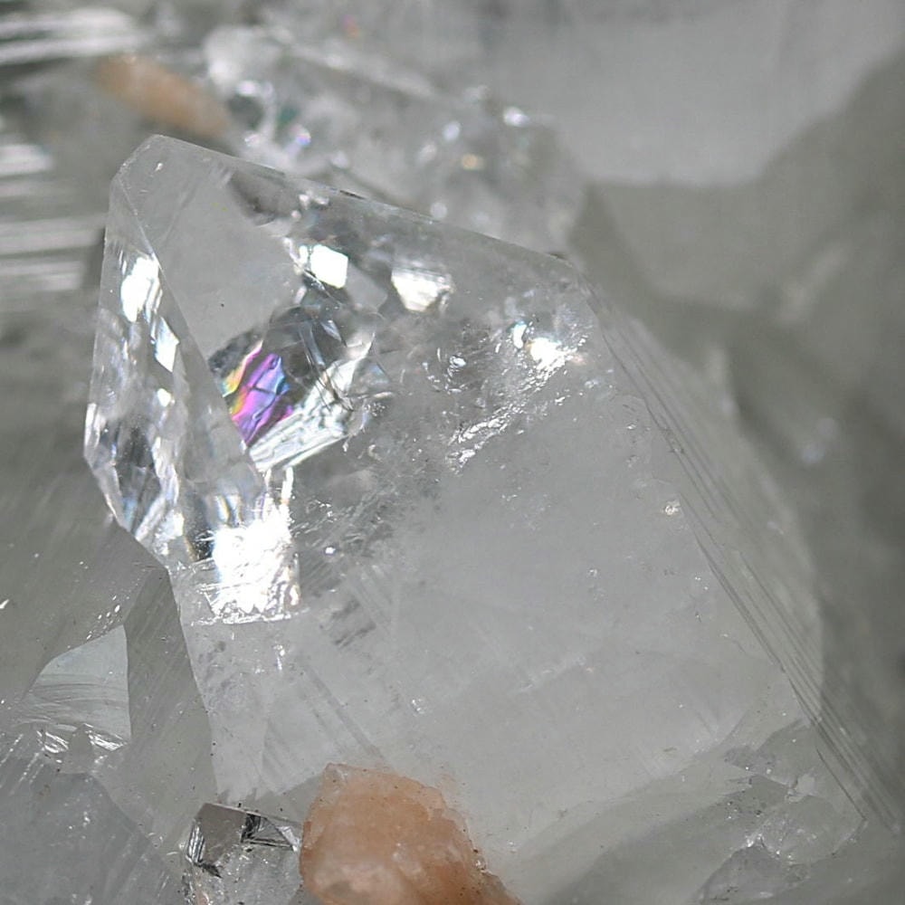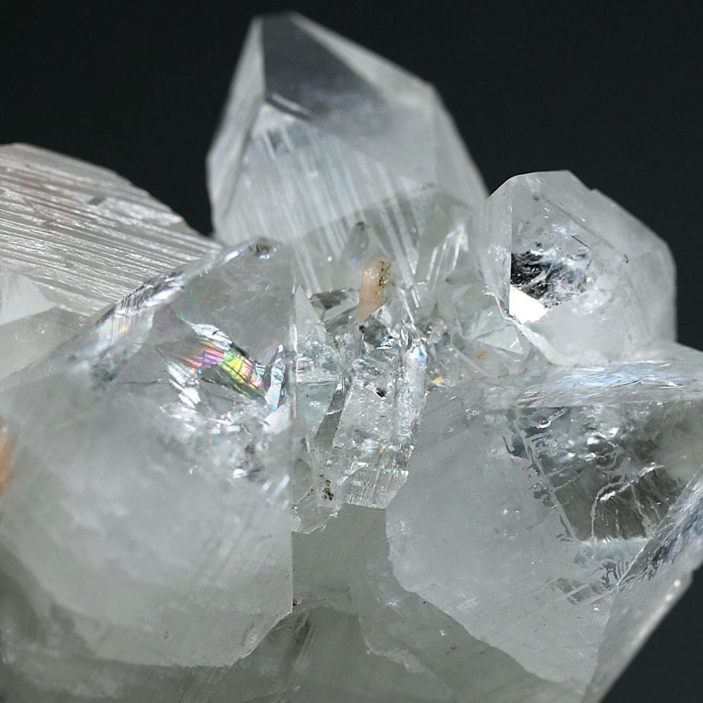 水晶が六角形(六方晶系)の結晶であるのに対し、アポフィライトは正方形(正方晶系)の結晶を成すのが特徴です。キューブ状の結晶が鏡面のように輝き、他の結晶とは一線を画す魅力をお楽しみいただけます。