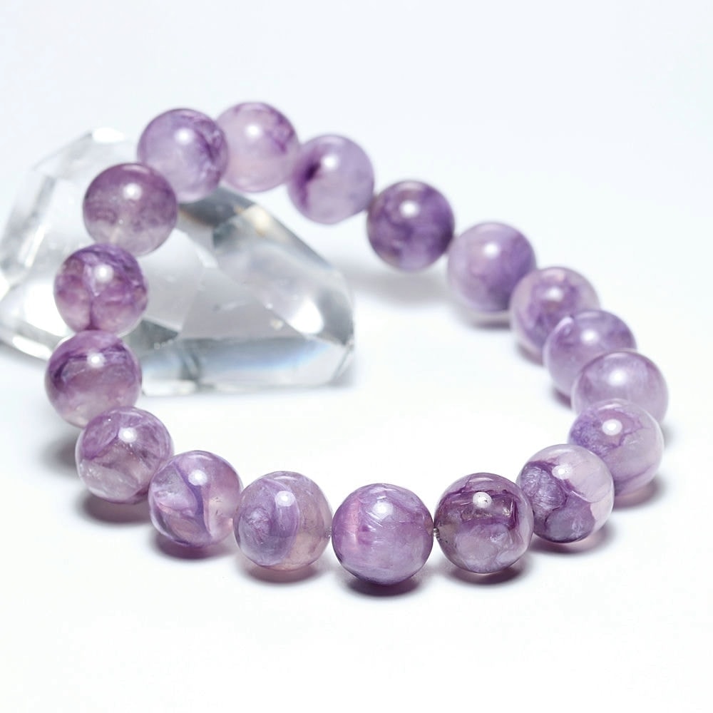 大きめ12ミリ玉チャロアイトシリカは流通少なく貴重です。近年はチャロアイトブレスレットそのものが入手困難にあるため、お探しだった方にも自信をもっておすすめできる逸品といえるでしょう。