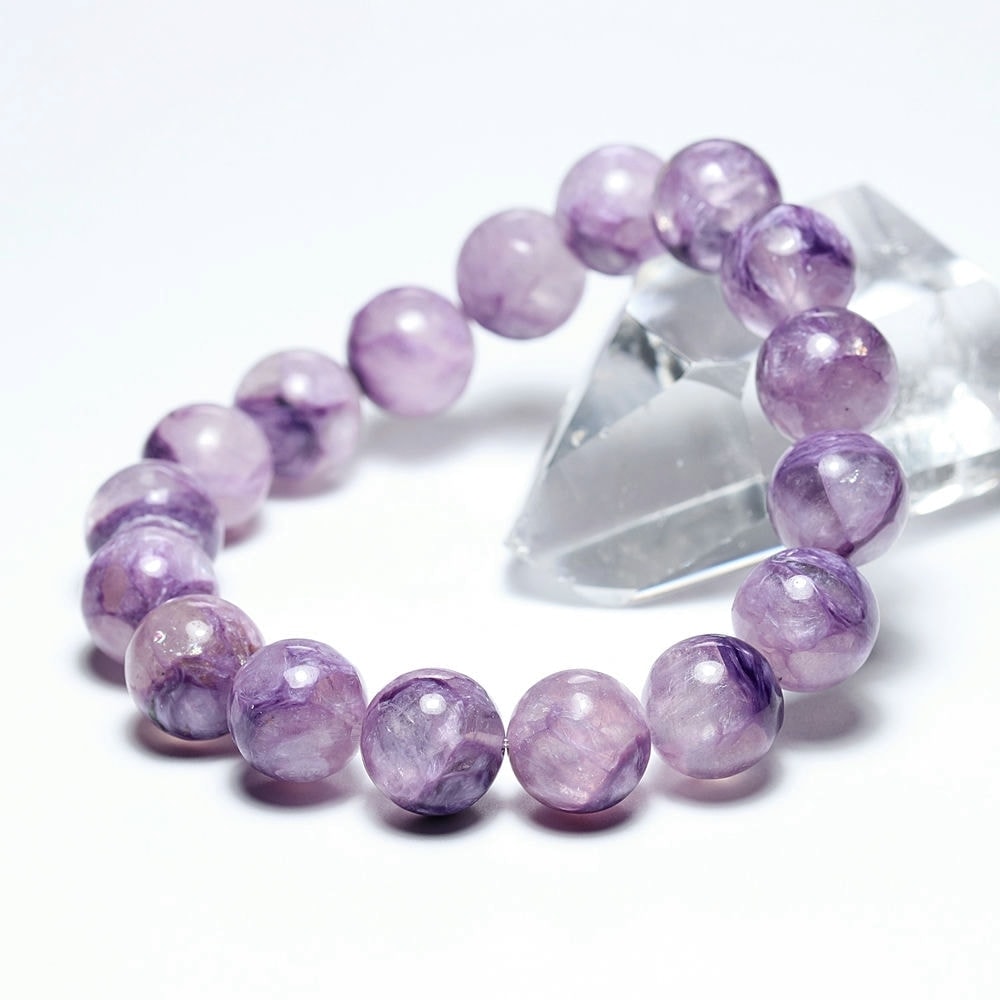 チャロアイトは、人生における不安や恐れを軽減し克服する作用があるとされ、スギライトやラリマーと並び「世界三大ヒーリングストーン」としても数えられる人気の天然石です。