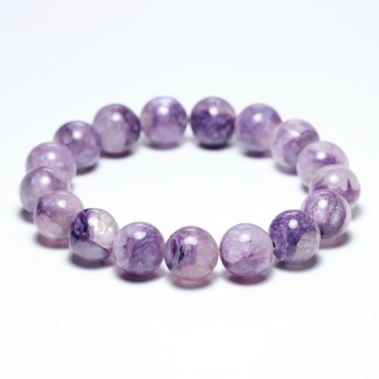 このように透明感と発色のバランスが整った良質なチャロアイトシリカは流通少なく貴重なグレードです。近年はチャロアイトブレスレットそのものが入手困難にあるため、お探しだった方にも自信をもっておすすめできる逸品といえるでしょう。