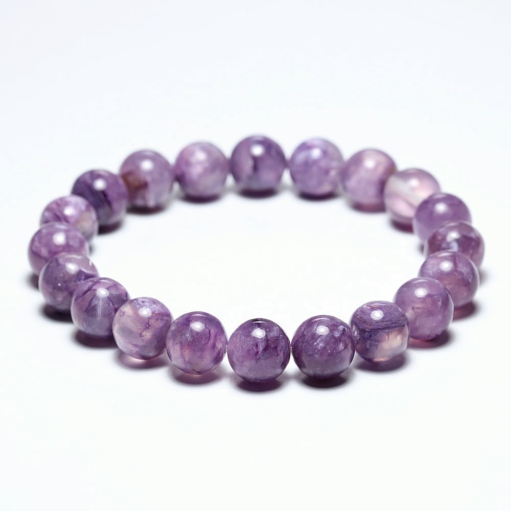 このように透明感と発色のバランスが整った良質なチャロアイトシリカは流通少なく貴重なグレードです。近年はチャロアイトブレスレットそのものが入手困難にあるため、お探しだった方にも自信をもっておすすめできる逸品といえるでしょう。