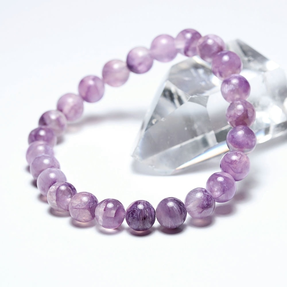 “天使のストーン” と呼ばれるチャロアイトとクォーツが混ざり合う癒しのブレスレット