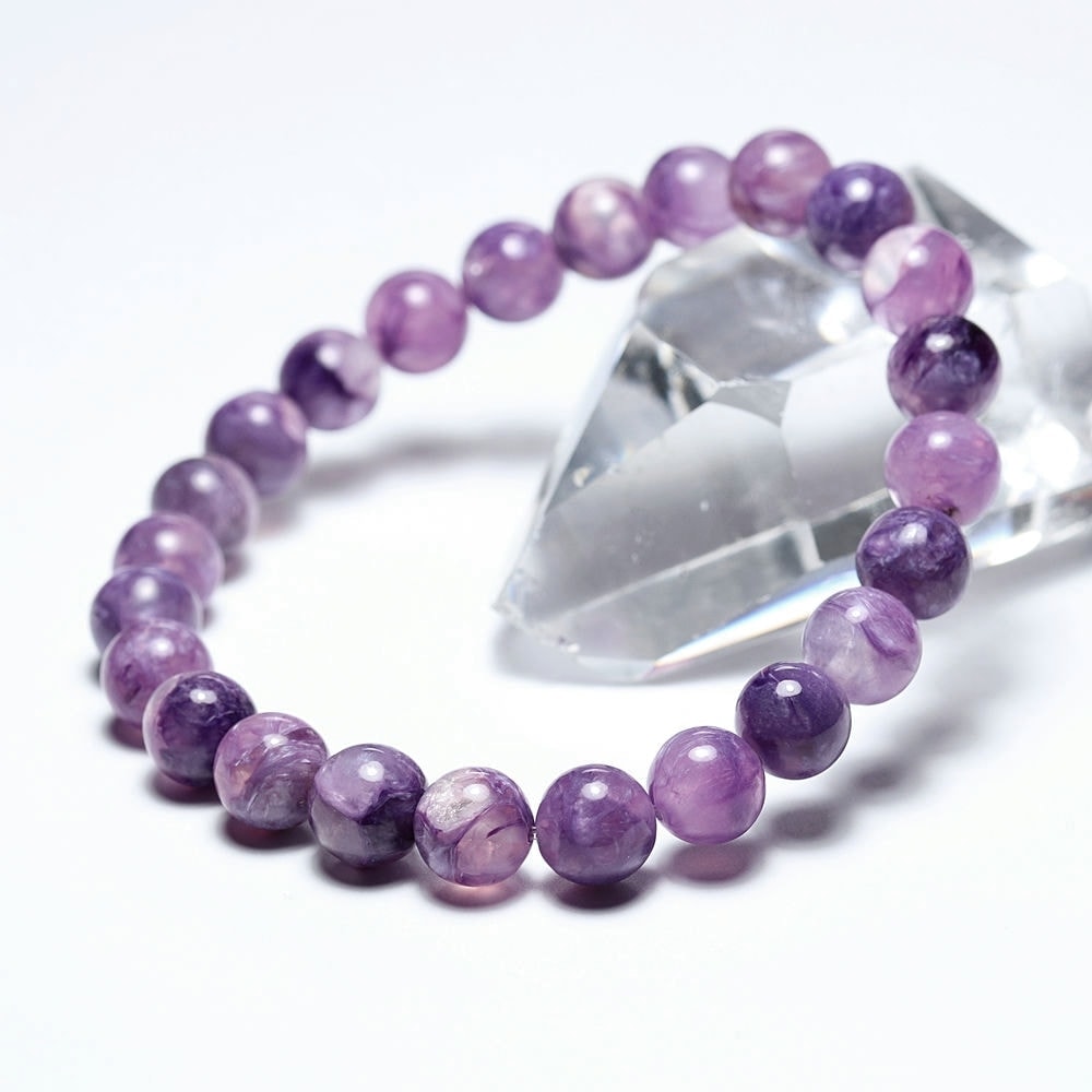 このように透明感と発色のバランスが整った良質なチャロアイトシリカは流通少なく貴重なグレードです。近年はチャロアイトブレスレットそのものが入手困難にあるため、お探しだった方にも自信をもっておすすめできる逸品といえるでしょう。