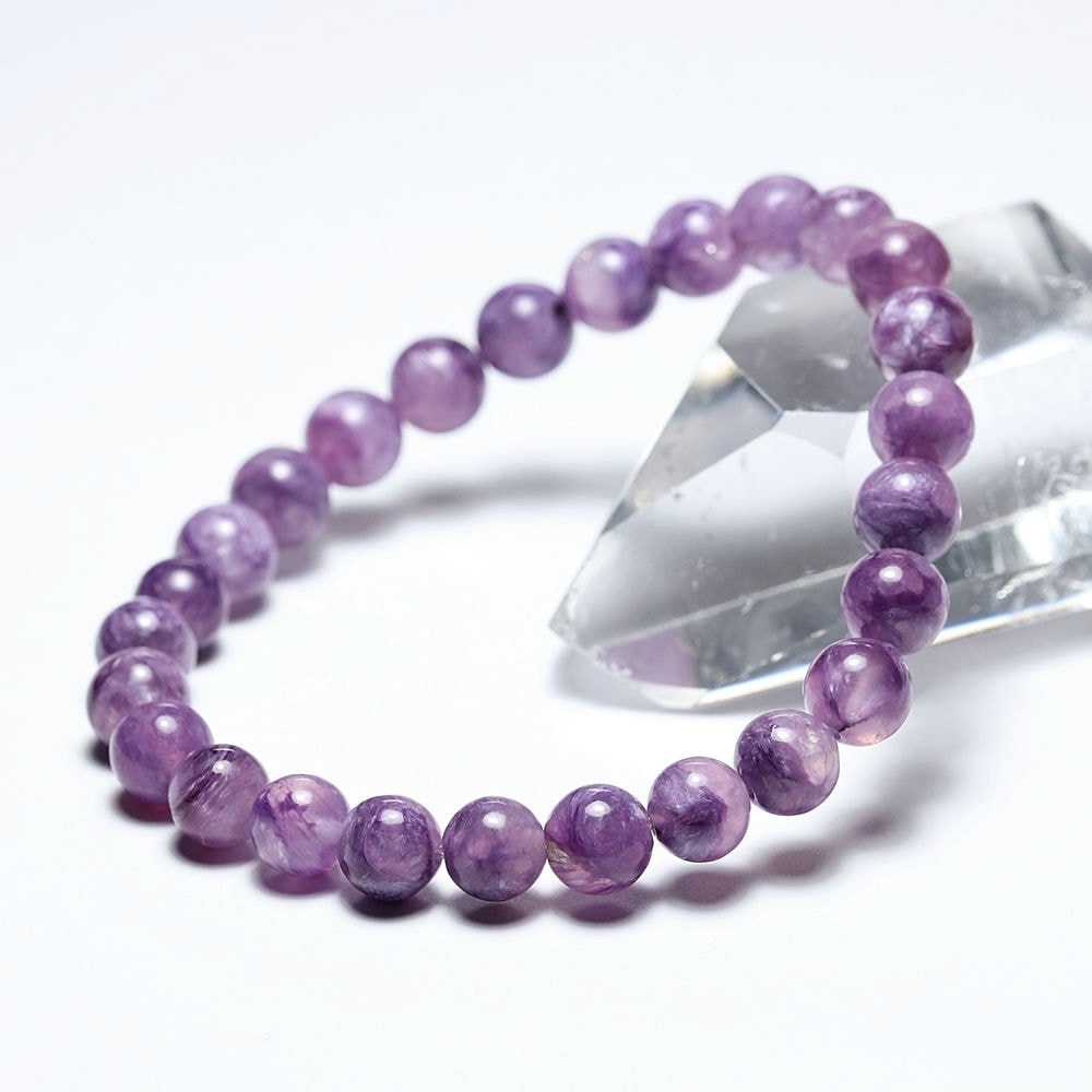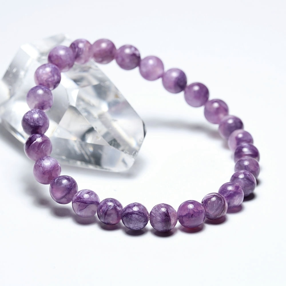 このように透明感と発色のバランスが整った良質なチャロアイトシリカは流通少なく貴重なグレードです。近年はチャロアイトブレスレットそのものが入手困難にあるため、お探しだった方にも自信をもっておすすめできる逸品といえるでしょう。