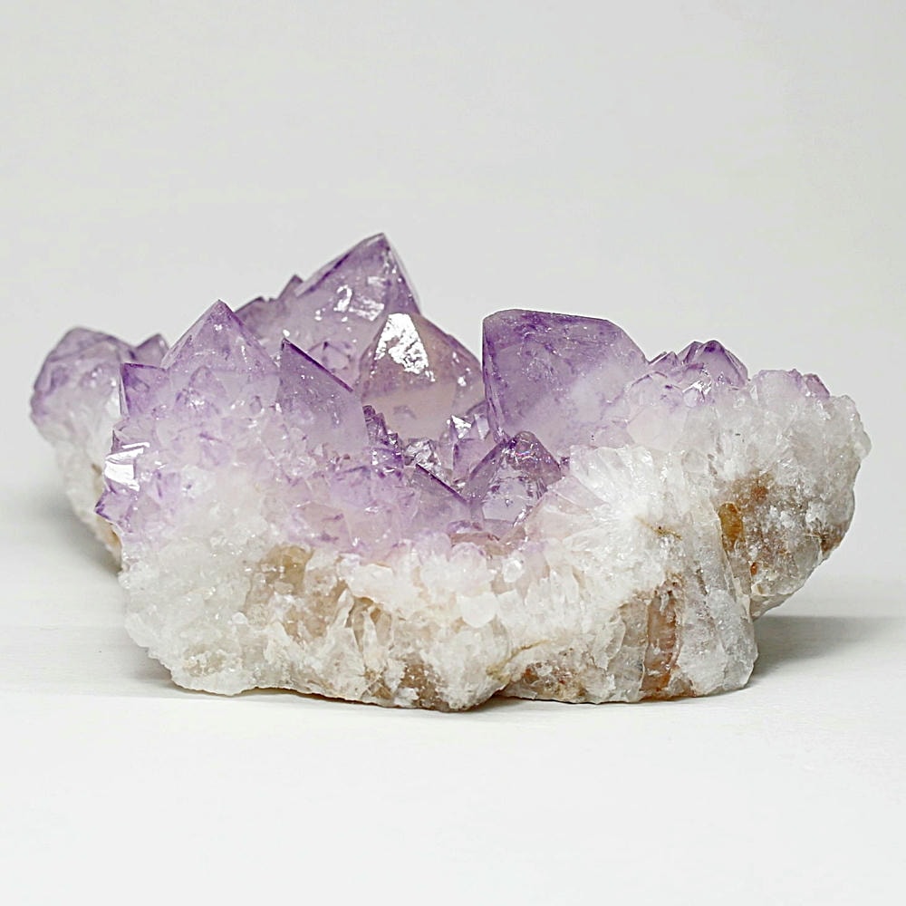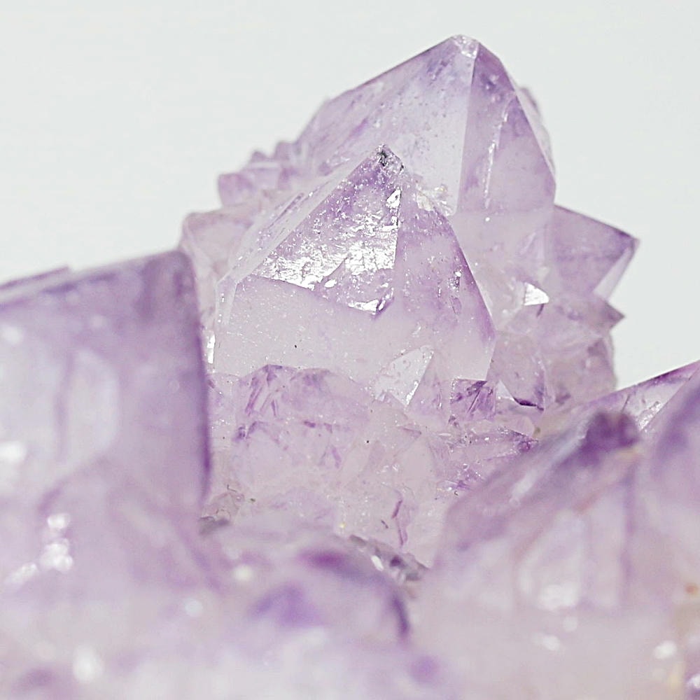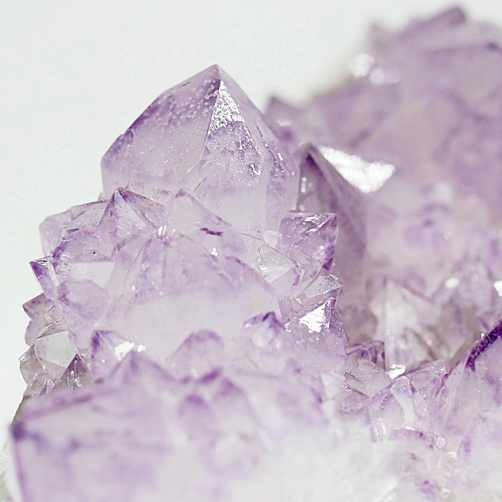 アメジスト本来の浄化力に加え、群晶構造によってエネルギーが周囲へ拡散すると云われ、空間や人間関係の調和を促す石として伝えられています。人が集まる場所や癒しの空間に置く原石としても人気の高い存在です。