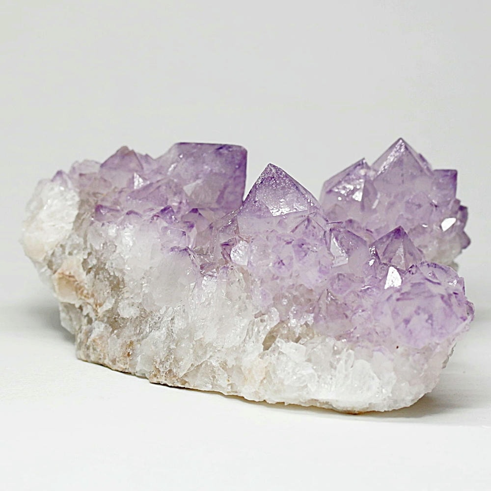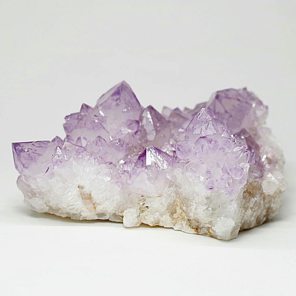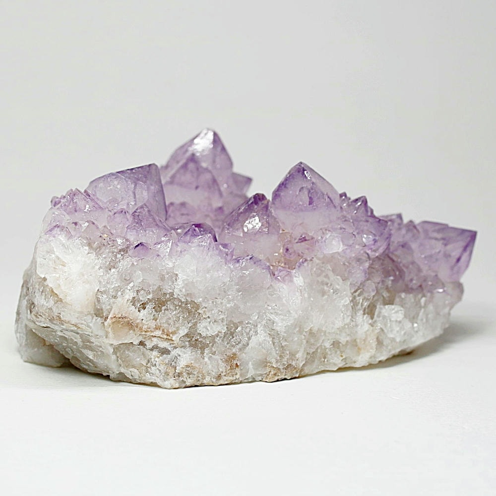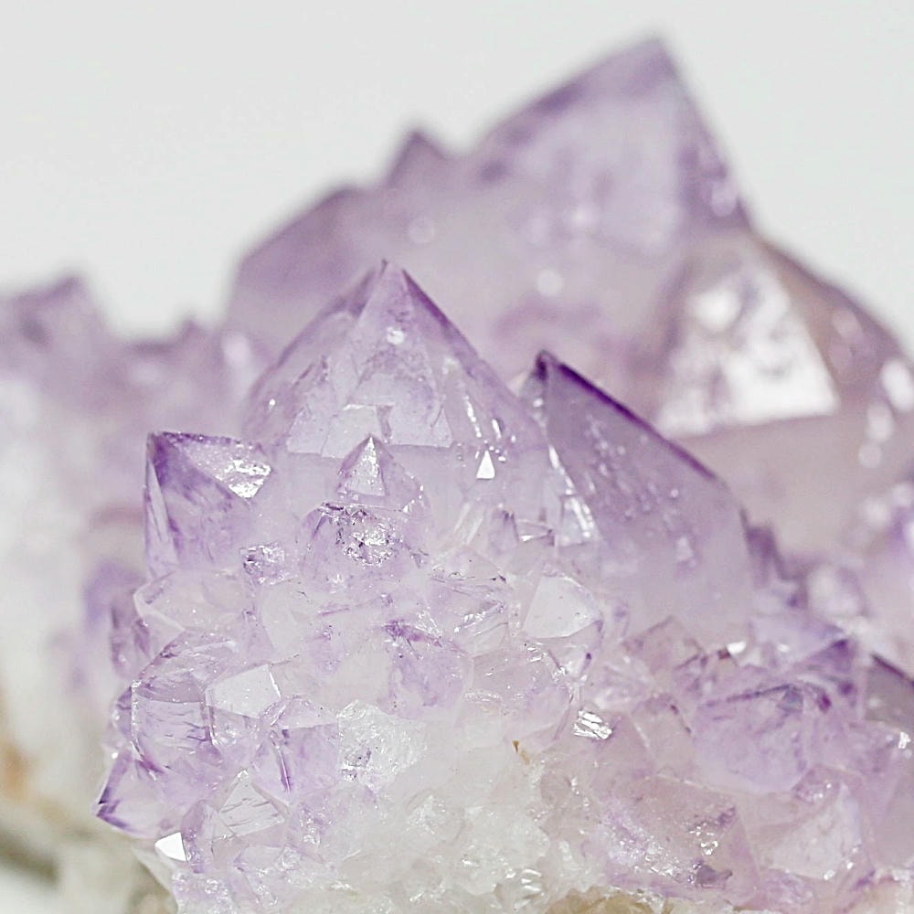 アメジスト本来の浄化力に加え、群晶構造によってエネルギーが周囲へ拡散すると云われ、空間や人間関係の調和を促す石として伝えられています。人が集まる場所や癒しの空間に置く原石としても人気の高い存在です。