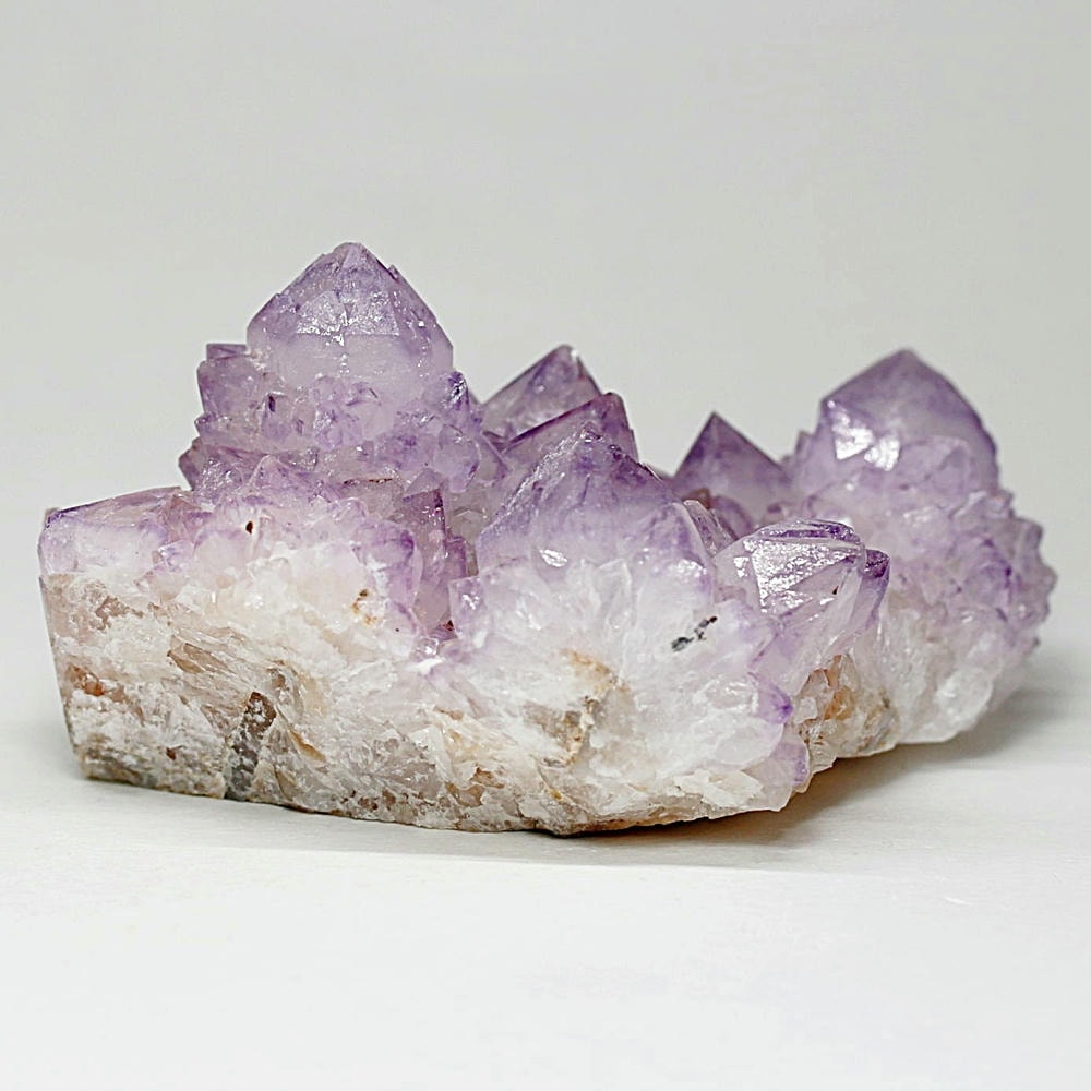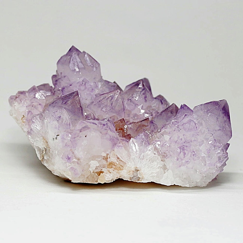 結晶の各面にやわらかな紫のグラデーションが現れ、光を受けた際の輝きも格別となり、南アフリカ産カクタスアメジストならではの澄んだ色彩美を存分にご堪能いただけます。
