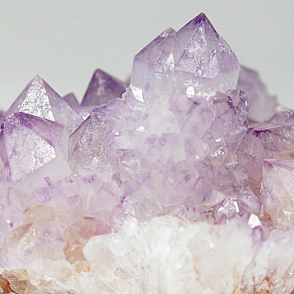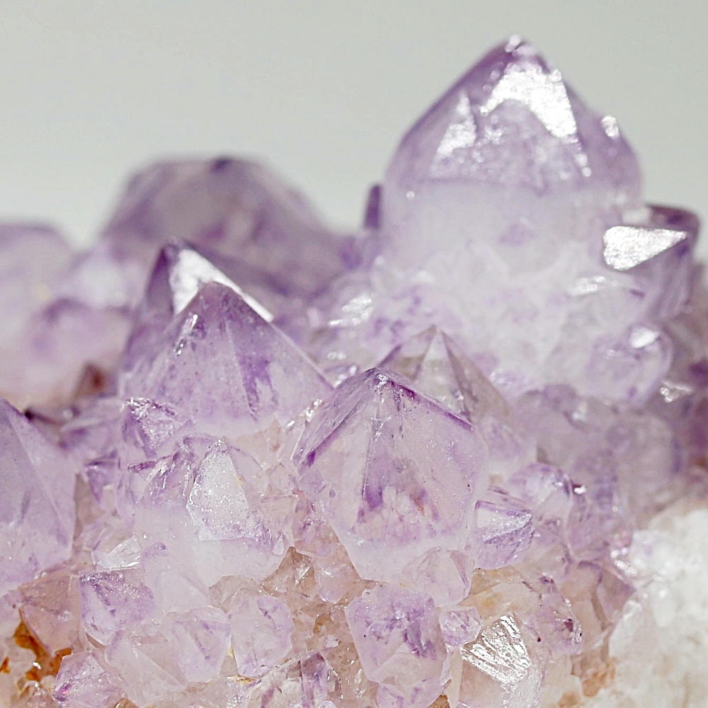 アメジスト本来の浄化力に加え、群晶構造によってエネルギーが周囲へ拡散すると云われ、空間や人間関係の調和を促す石として伝えられています。人が集まる場所や癒しの空間に置く原石としても人気の高い存在です。