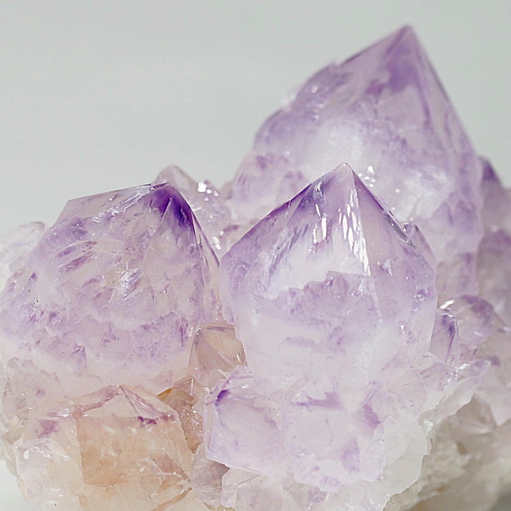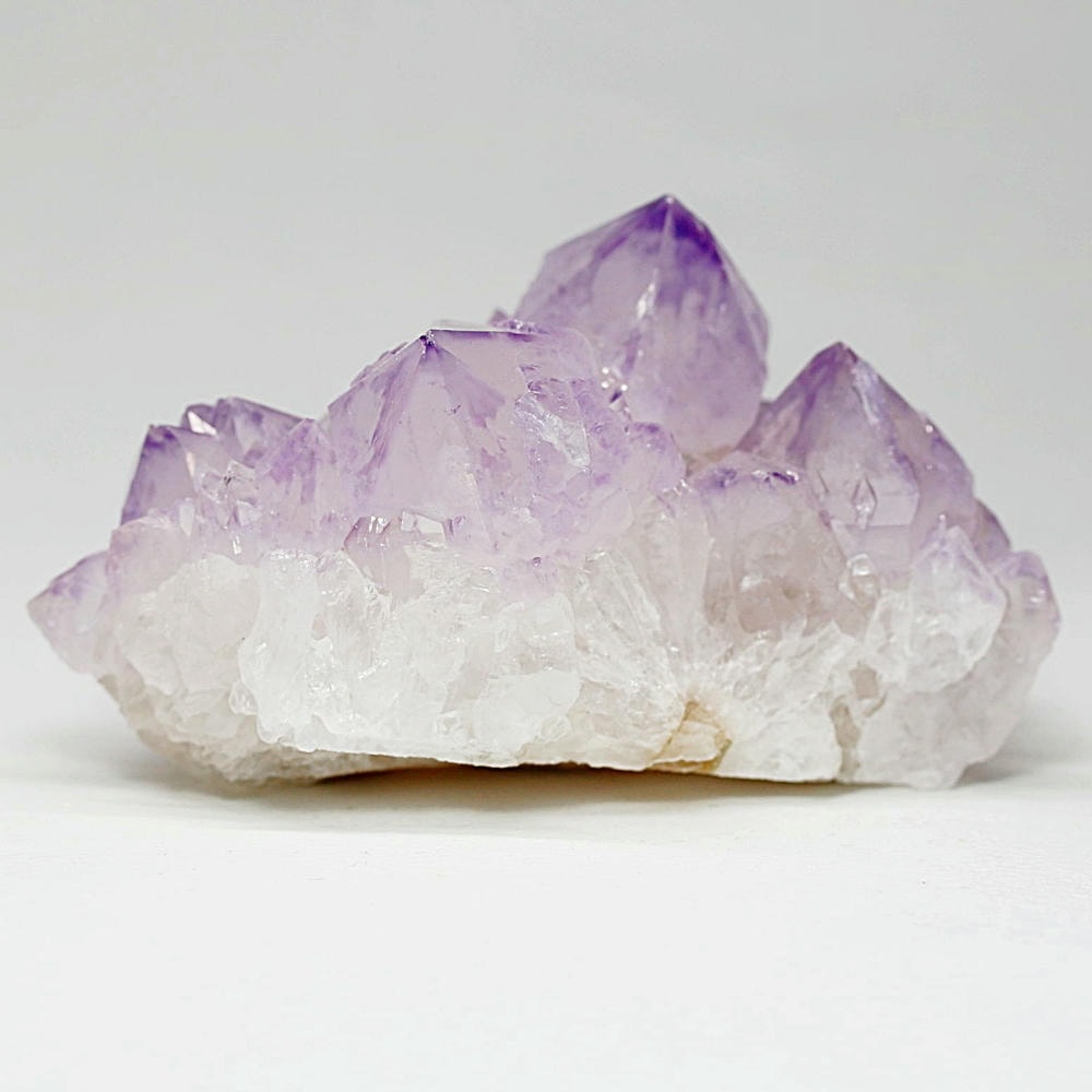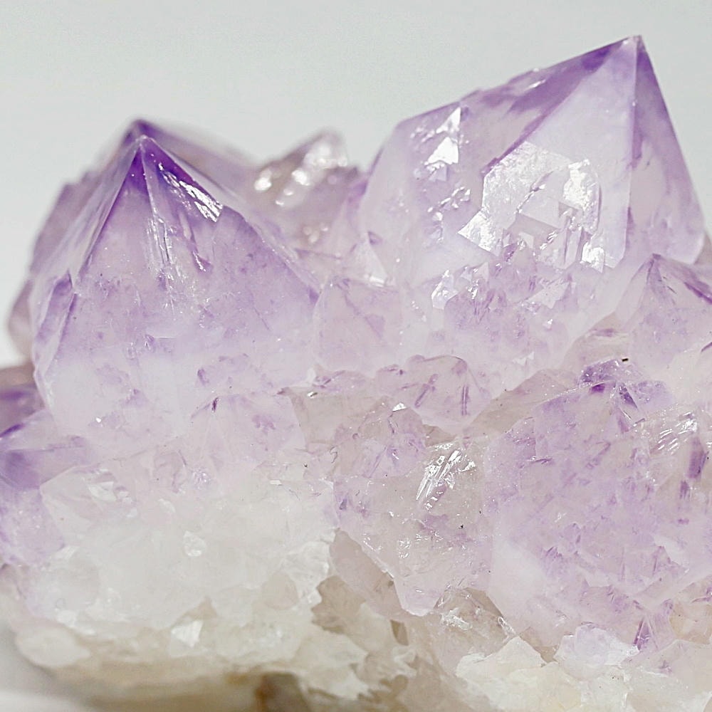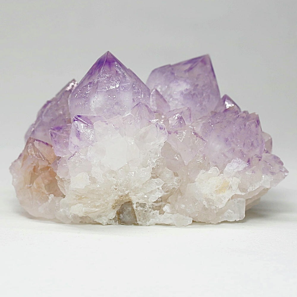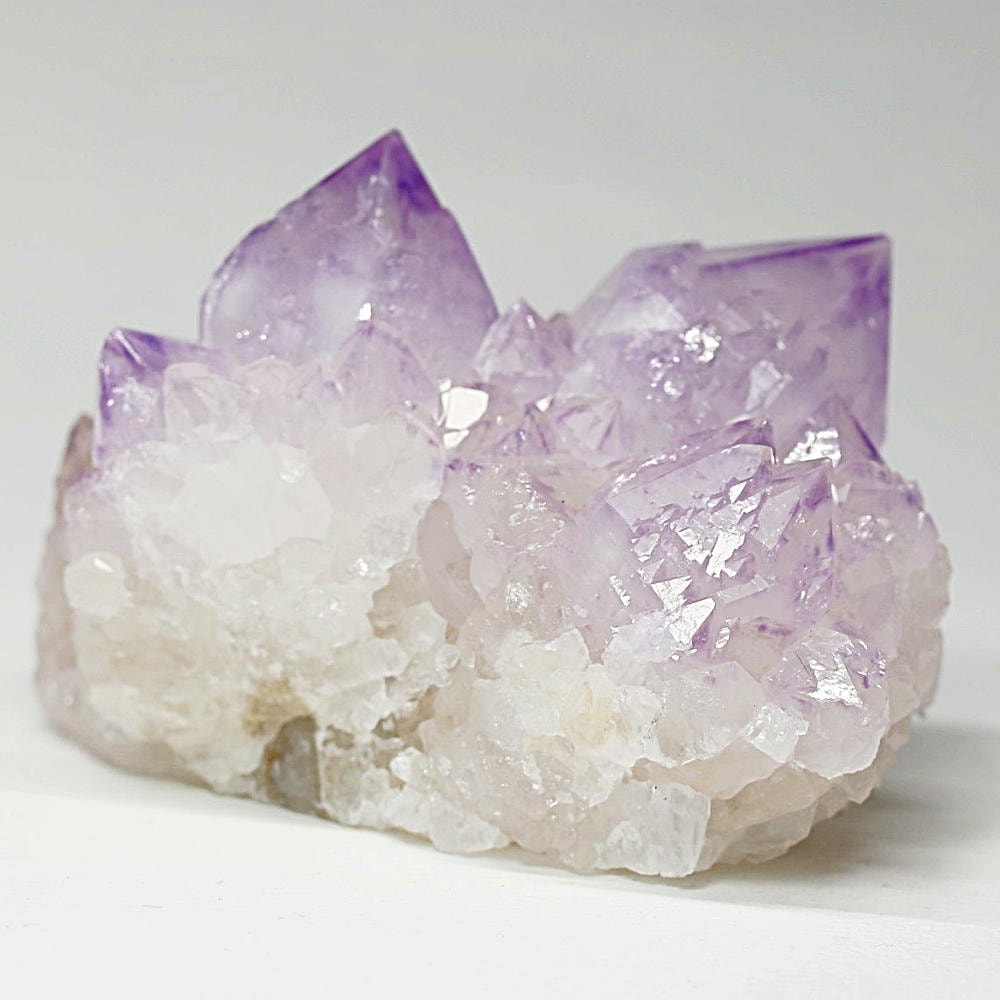アメジスト本来の浄化力に加え、群晶構造によってエネルギーが周囲へ拡散すると云われ、空間や人間関係の調和を促す石として伝えられています。人が集まる場所や癒しの空間に置く原石としても人気の高い存在です。