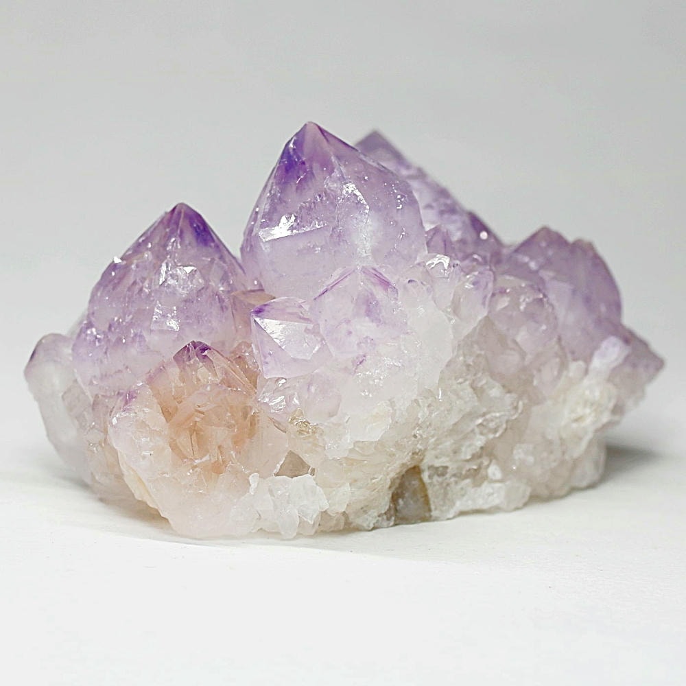 結晶の各面にやわらかな紫のグラデーションが現れ、光を受けた際の輝きも格別となり、南アフリカ産カクタスアメジストならではの澄んだ色彩美を存分にご堪能いただけます。