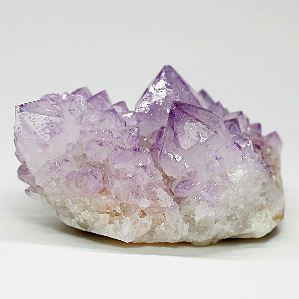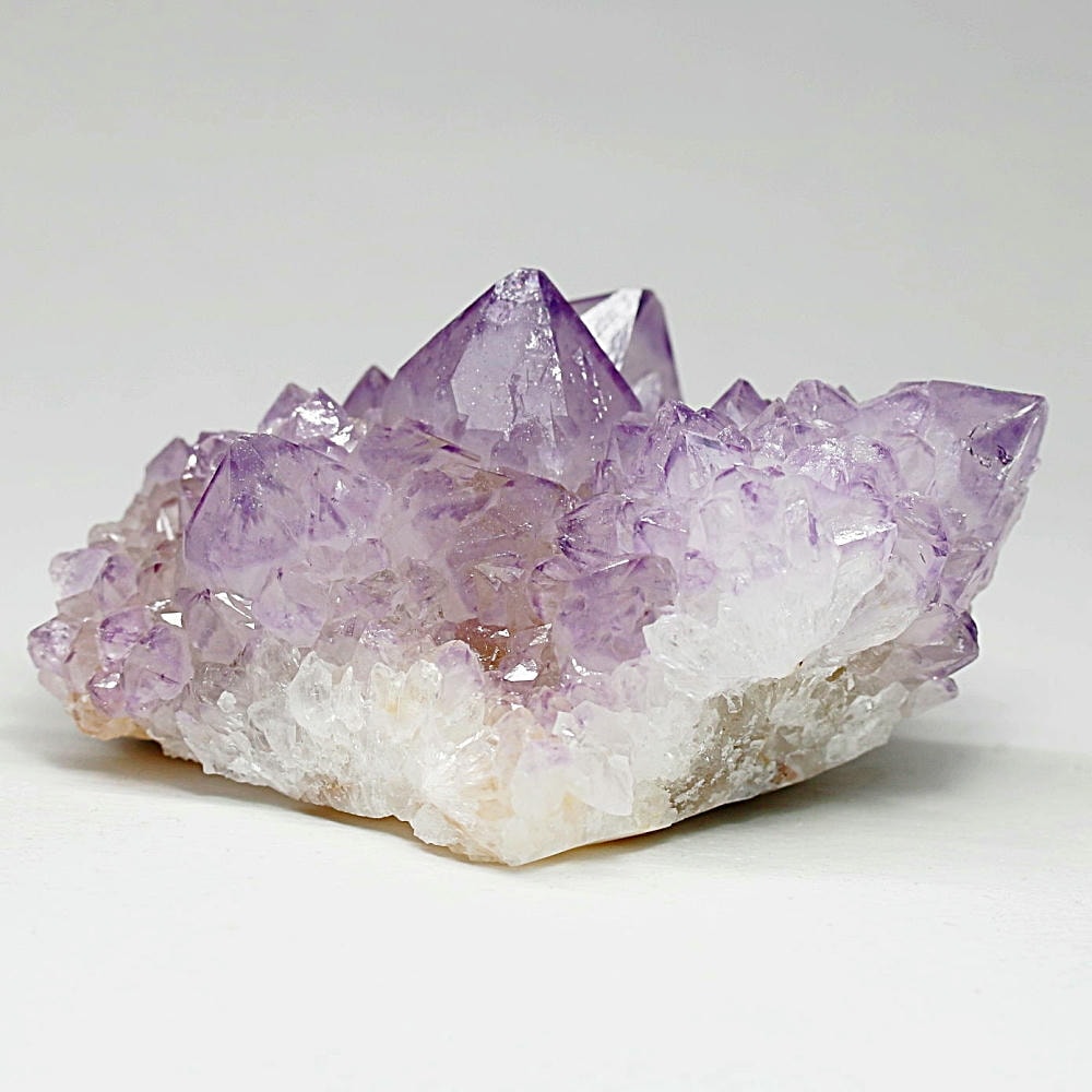 結晶の各面にやわらかな紫のグラデーションが現れ、光を受けた際の輝きも格別となり、南アフリカ産カクタスアメジストならではの澄んだ色彩美を存分にご堪能いただけます。