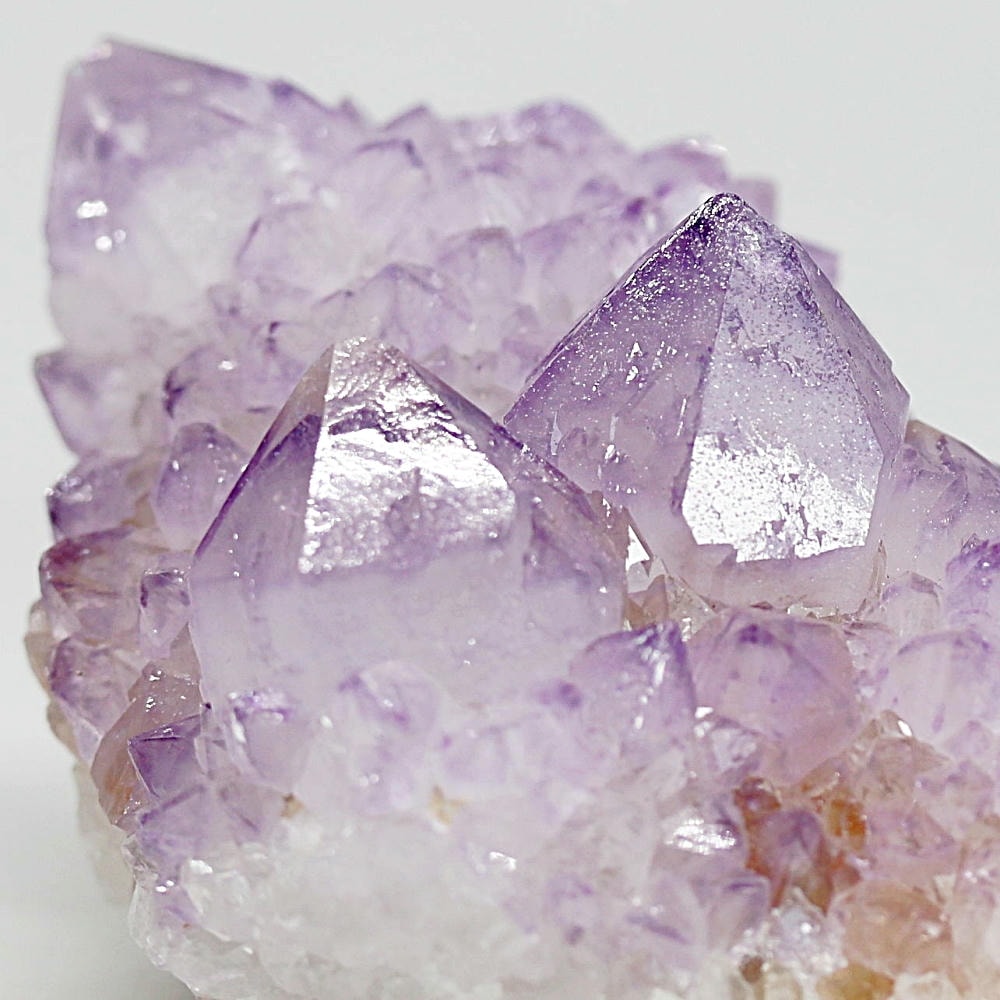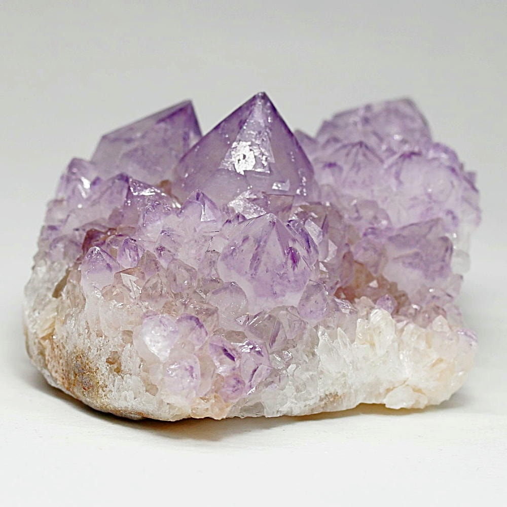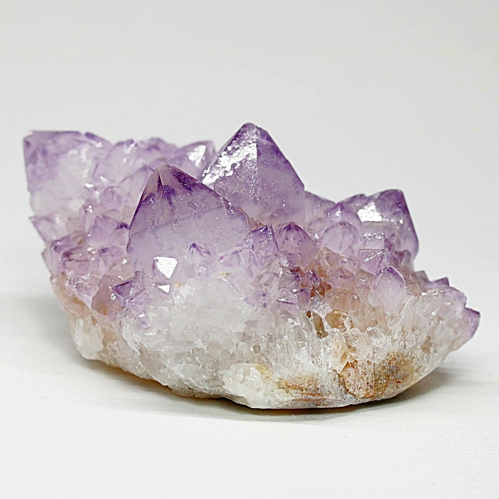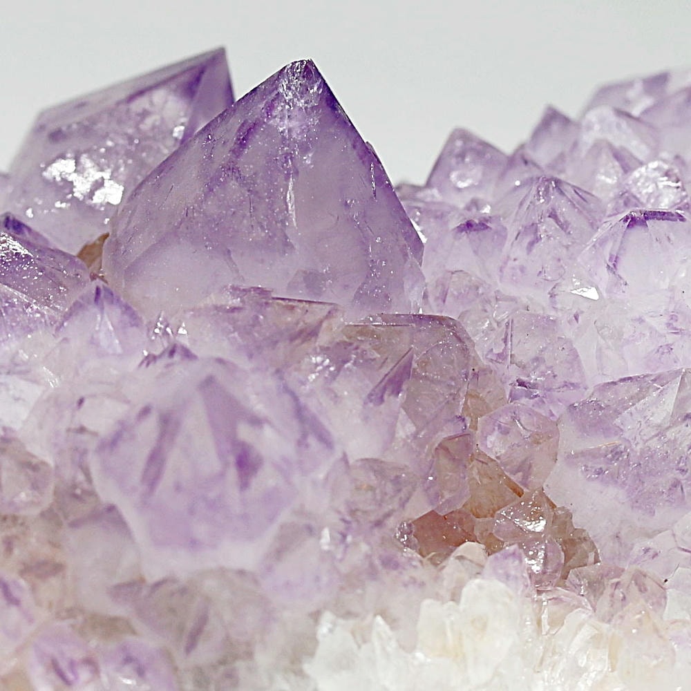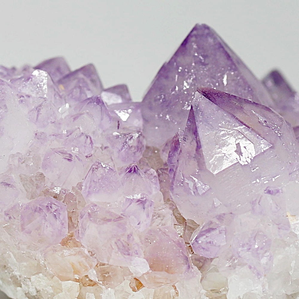 アメジスト本来の浄化力に加え、群晶構造によってエネルギーが周囲へ拡散すると云われ、空間や人間関係の調和を促す石として伝えられています。人が集まる場所や癒しの空間に置く原石としても人気の高い存在です。