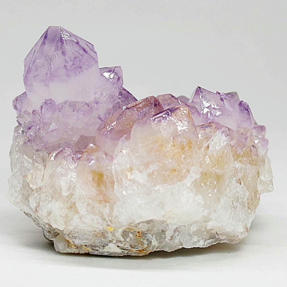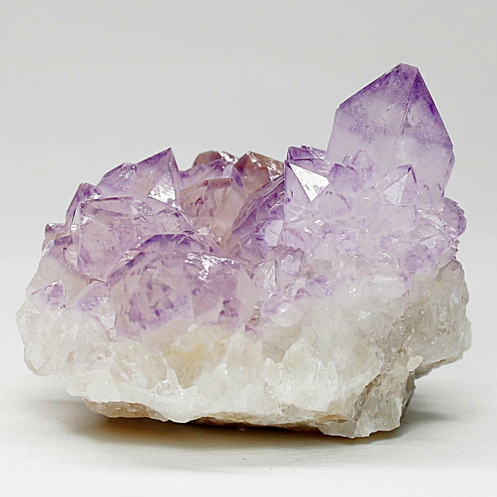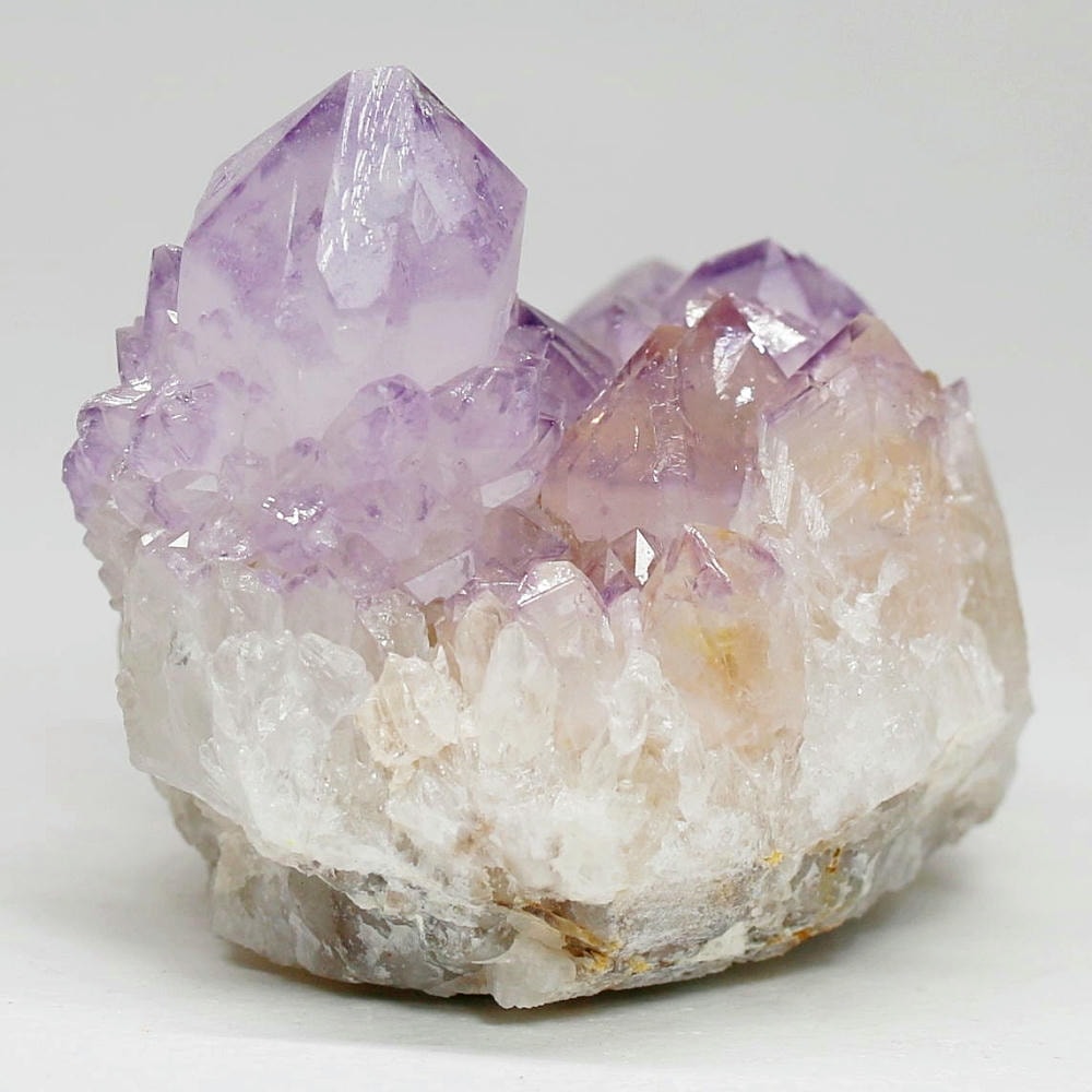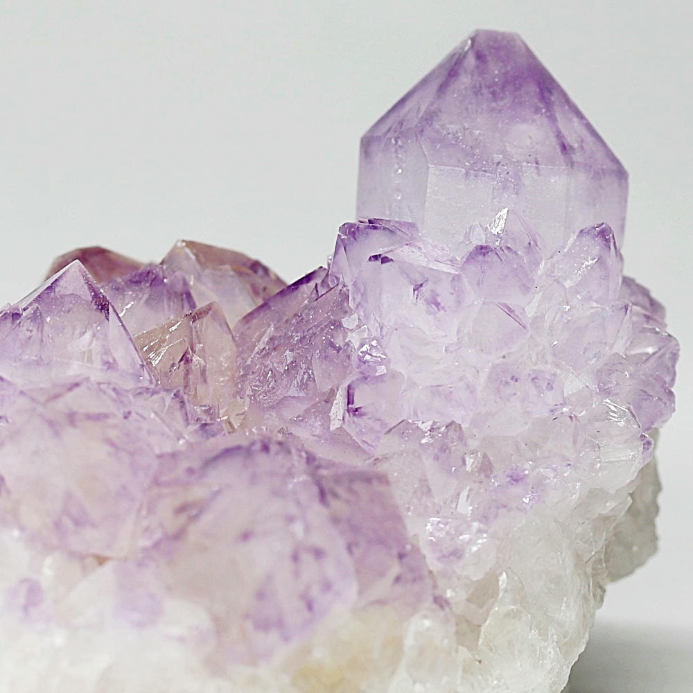 アメジスト本来の浄化力に加え、群晶構造によってエネルギーが周囲へ拡散すると云われ、空間や人間関係の調和を促す石として伝えられています。人が集まる場所や癒しの空間に置く原石としても人気の高い存在です。