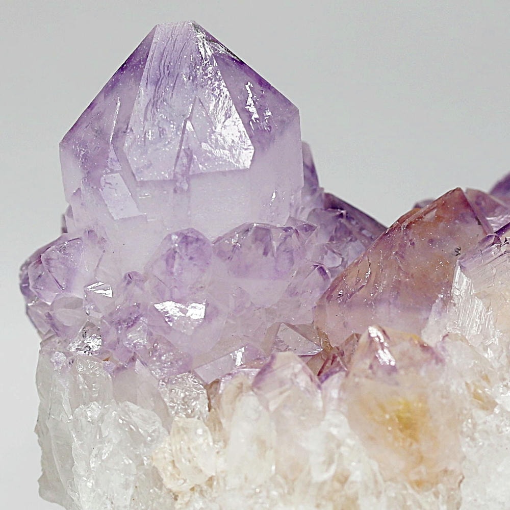ラベンダーカラーの結晶の中に、鉄分由来のイエローからオレンジの色彩が調和した、豊かな色彩のクラスターです。