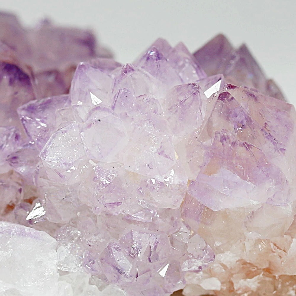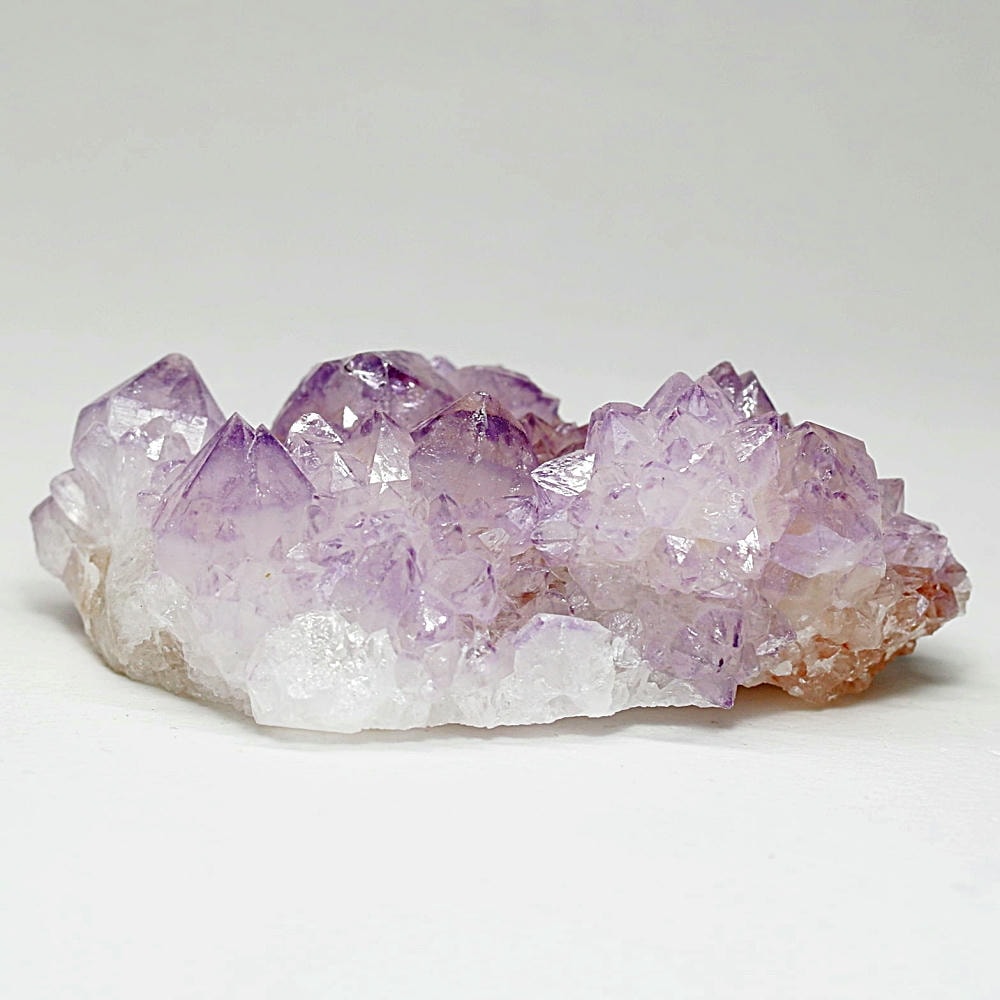 アメジスト本来の浄化力に加え、群晶構造によってエネルギーが周囲へ拡散すると云われ、空間や人間関係の調和を促す石として伝えられています。人が集まる場所や癒しの空間に置く原石としても人気の高い存在です。