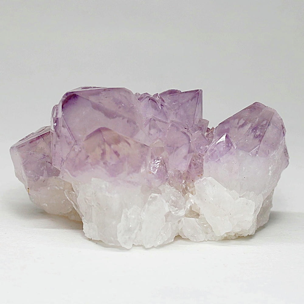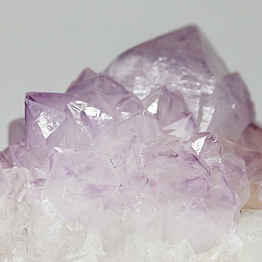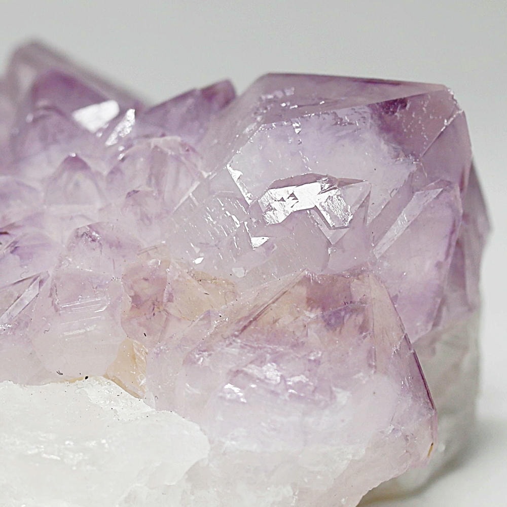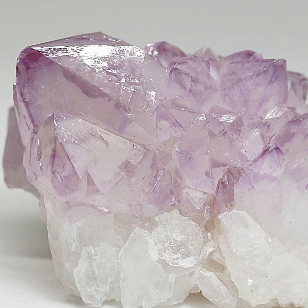 結晶の各面にやわらかな紫のグラデーションが現れ、光を受けた際の輝きも格別となり、南アフリカ産カクタスアメジストならではの澄んだ色彩美を存分にご堪能いただけます。