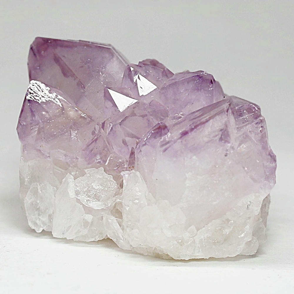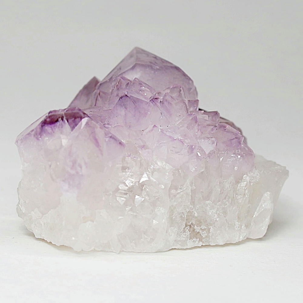 アメジスト本来の浄化力に加え、群晶構造によってエネルギーが周囲へ拡散すると云われ、空間や人間関係の調和を促す石として伝えられています。人が集まる場所や癒しの空間に置く原石としても人気の高い存在です。