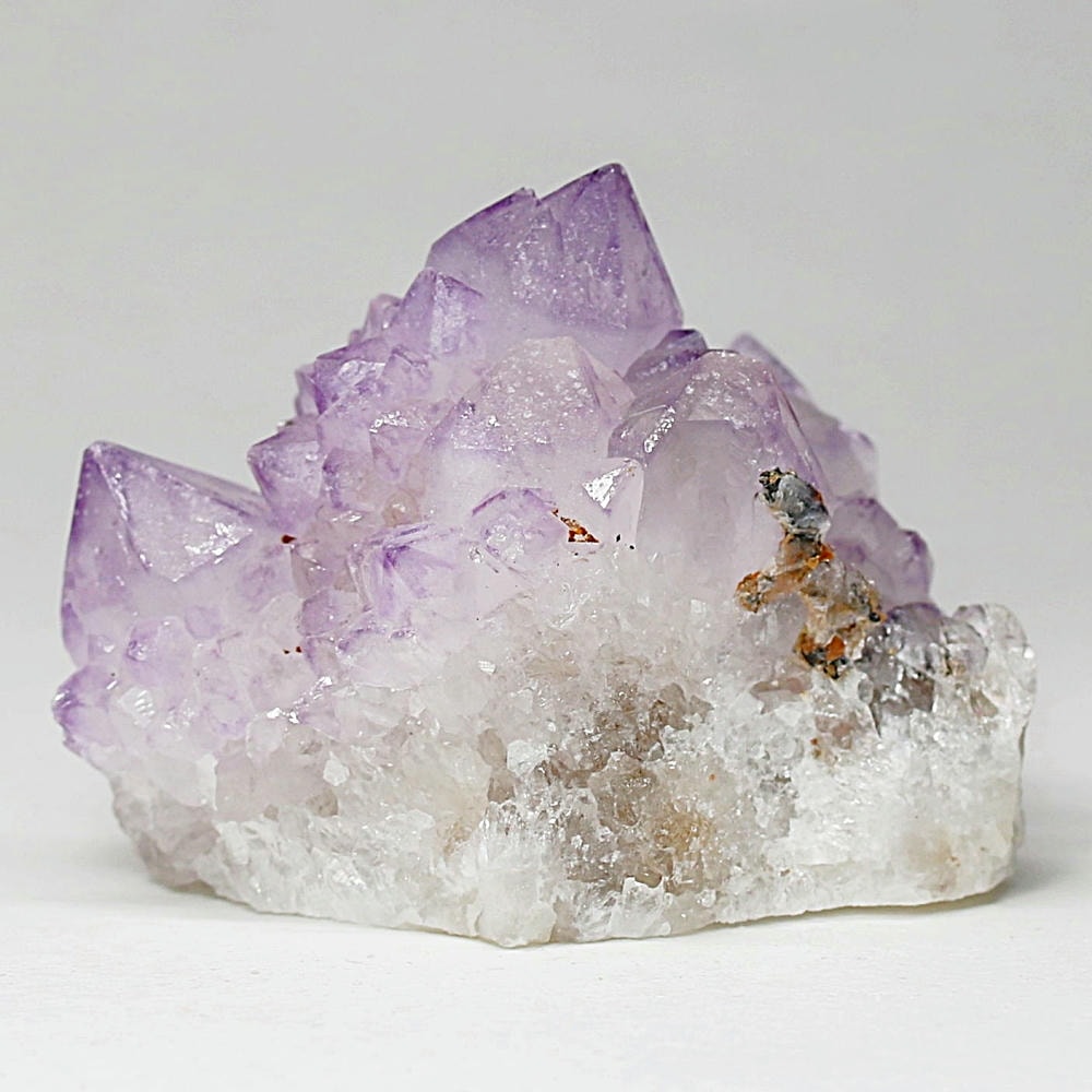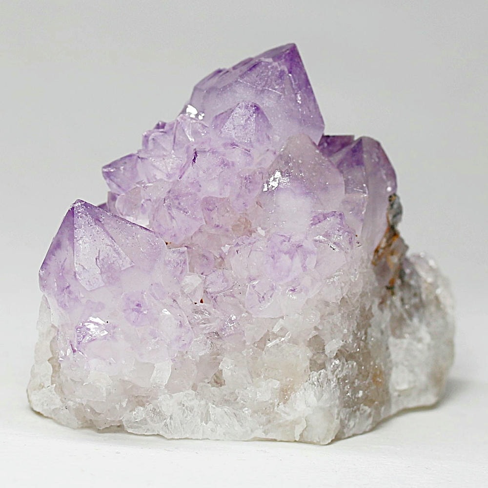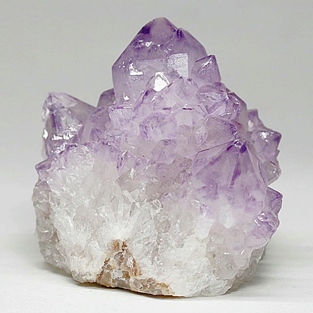 アメジスト本来の浄化力に加え、群晶構造によってエネルギーが周囲へ拡散すると云われ、空間や人間関係の調和を促す石として伝えられています。人が集まる場所や癒しの空間に置く原石としても人気の高い存在です。