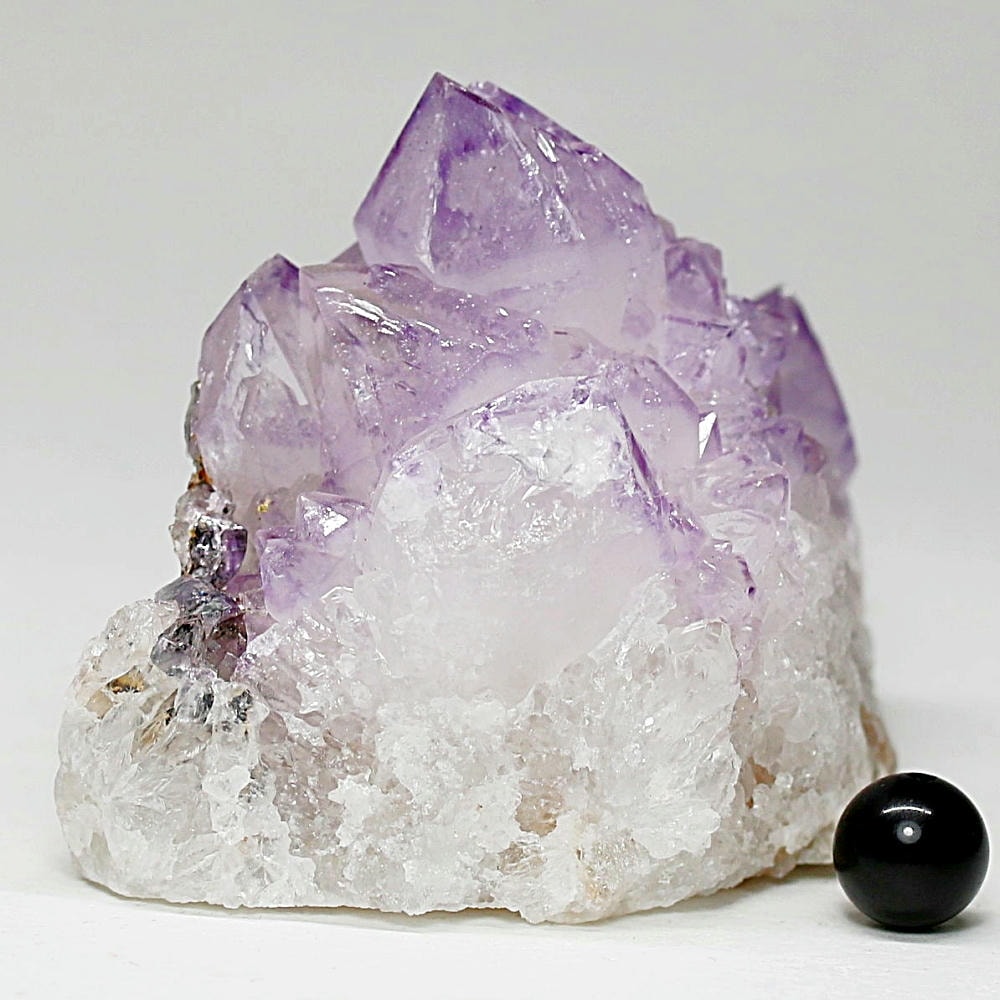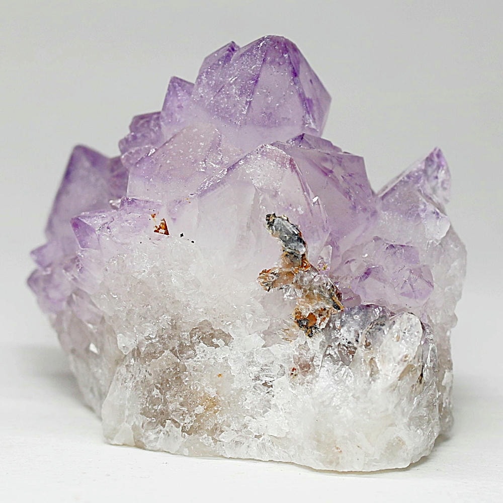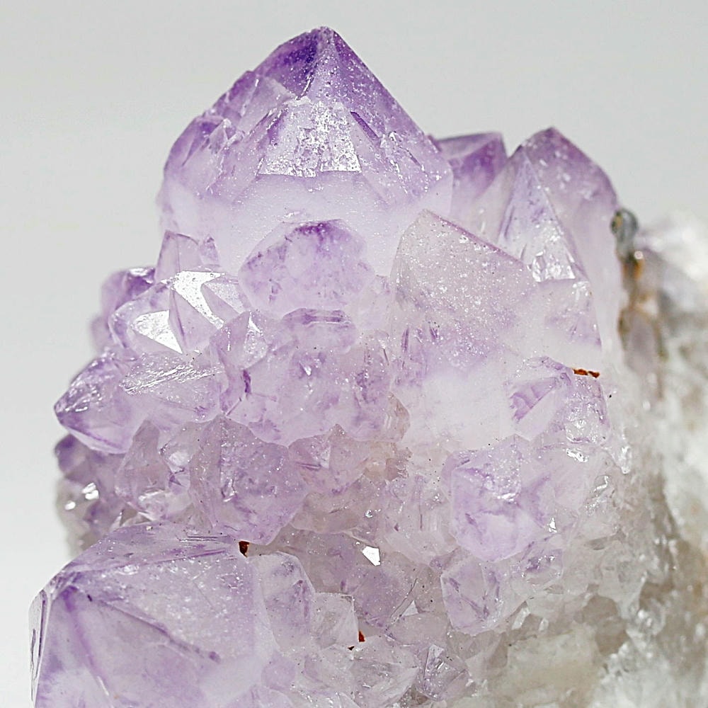 結晶全体が美しいラベンダーカラーに色づいた、鉄分による褐色化がほとんど見られないタイプです。