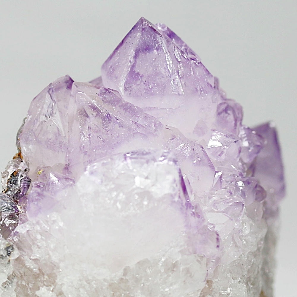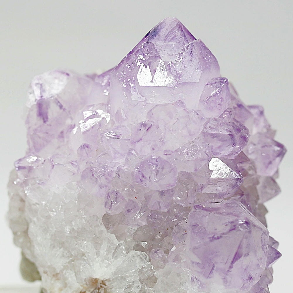 結晶の各面にやわらかな紫のグラデーションが現れ、光を受けた際の輝きも格別となり、南アフリカ産カクタスアメジストならではの澄んだ色彩美を存分にご堪能いただけます。