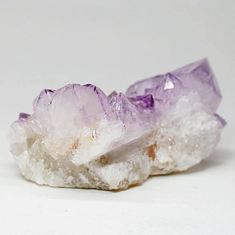 アメジスト本来の浄化力に加え、群晶構造によってエネルギーが周囲へ拡散すると云われ、空間や人間関係の調和を促す石として伝えられています。人が集まる場所や癒しの空間に置く原石としても人気の高い存在です。