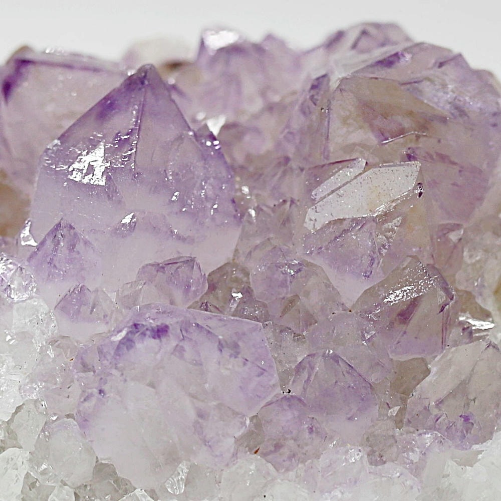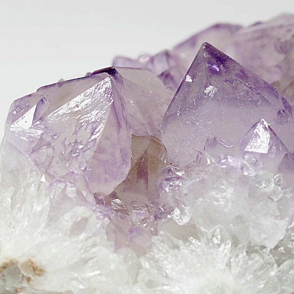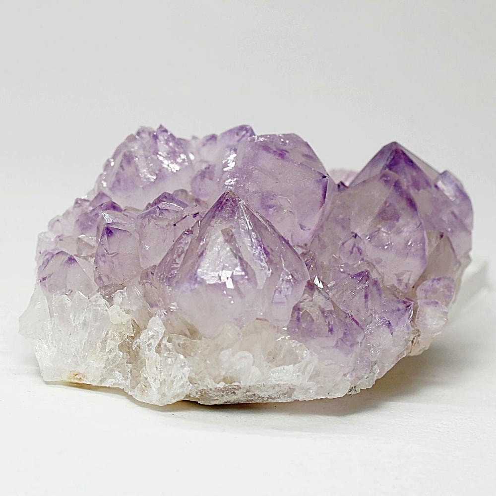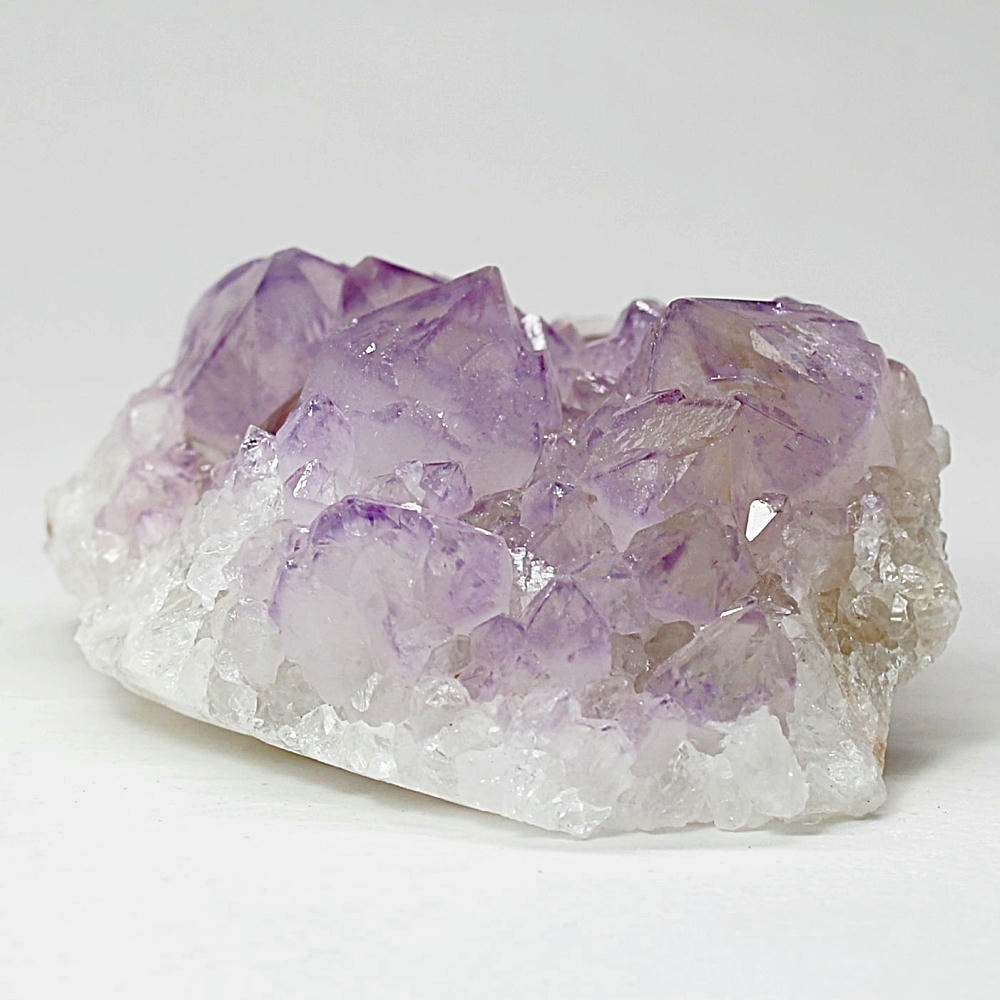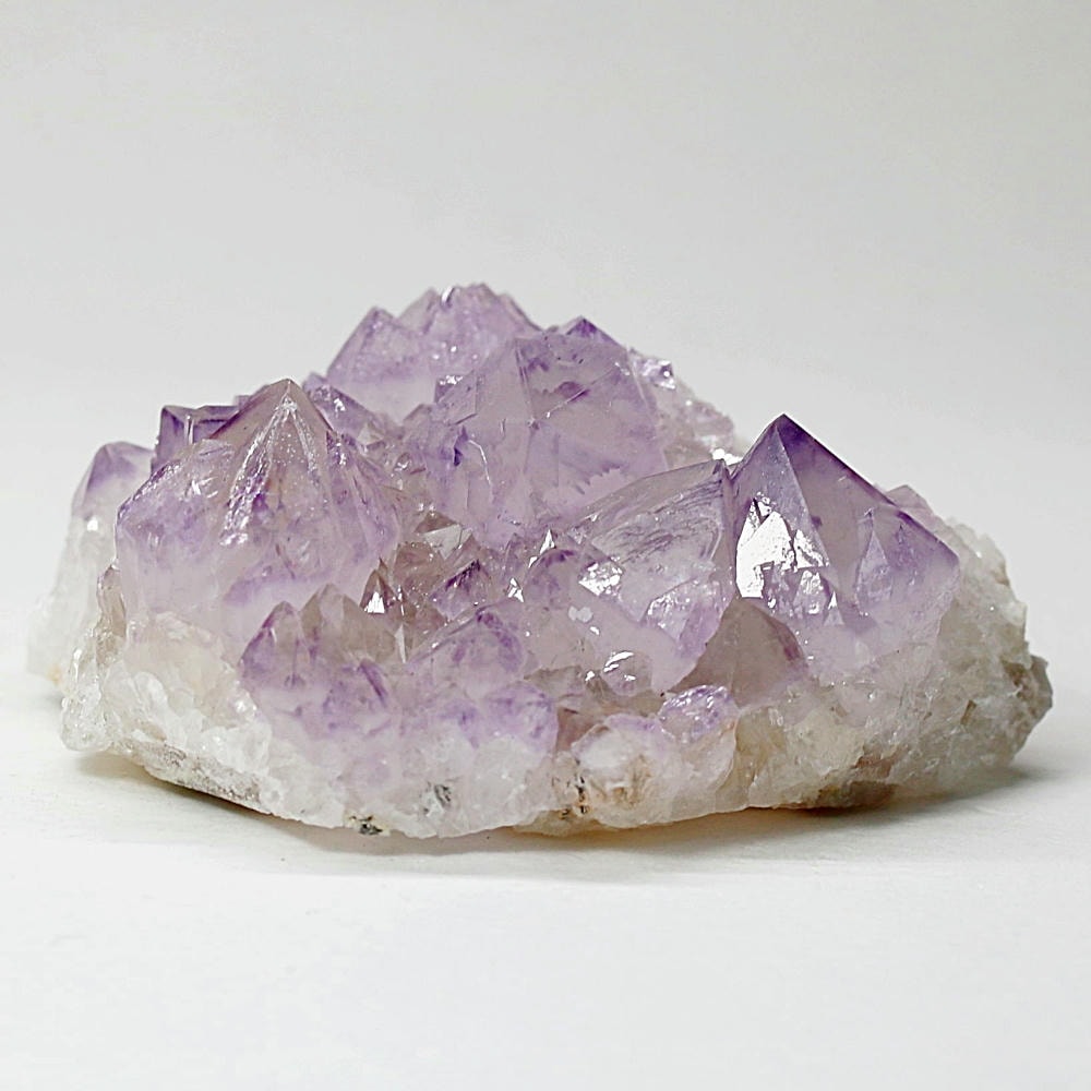 アメジスト本来の浄化力に加え、群晶構造によってエネルギーが周囲へ拡散すると云われ、空間や人間関係の調和を促す石として伝えられています。人が集まる場所や癒しの空間に置く原石としても人気の高い存在です。